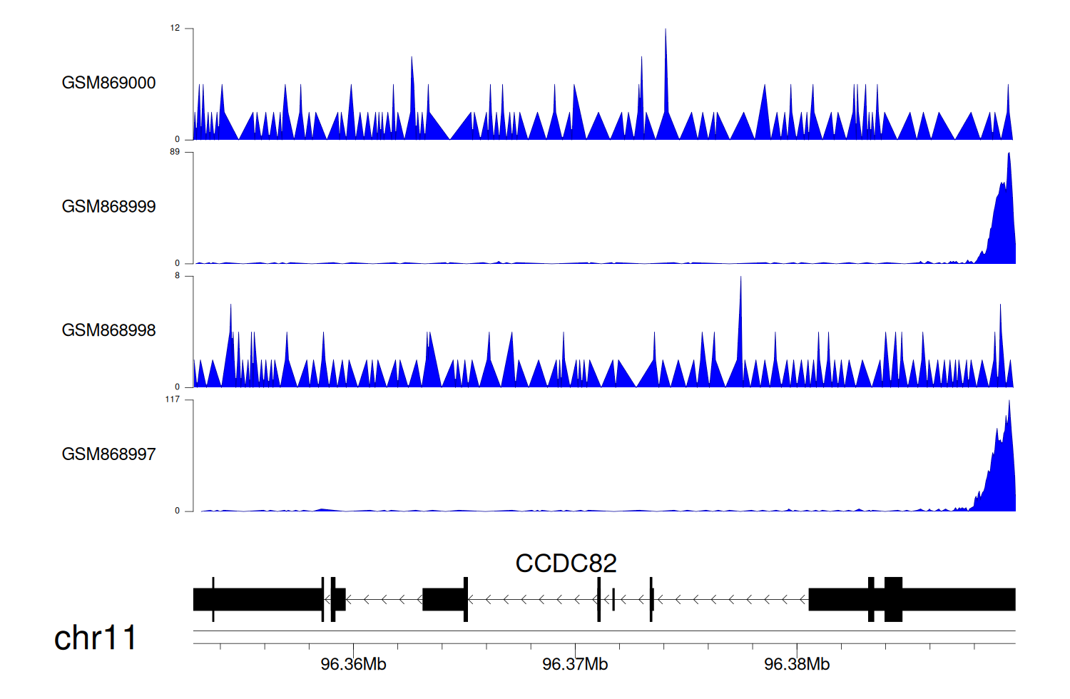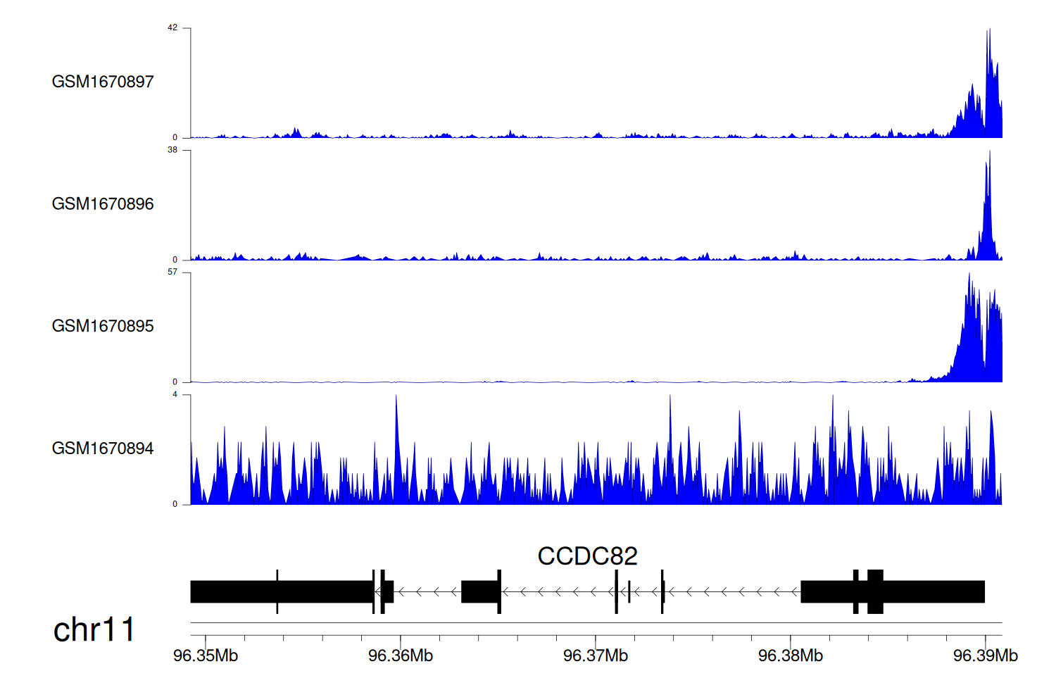 > Dataset: GSE68402 - CCDC82 peak across samples