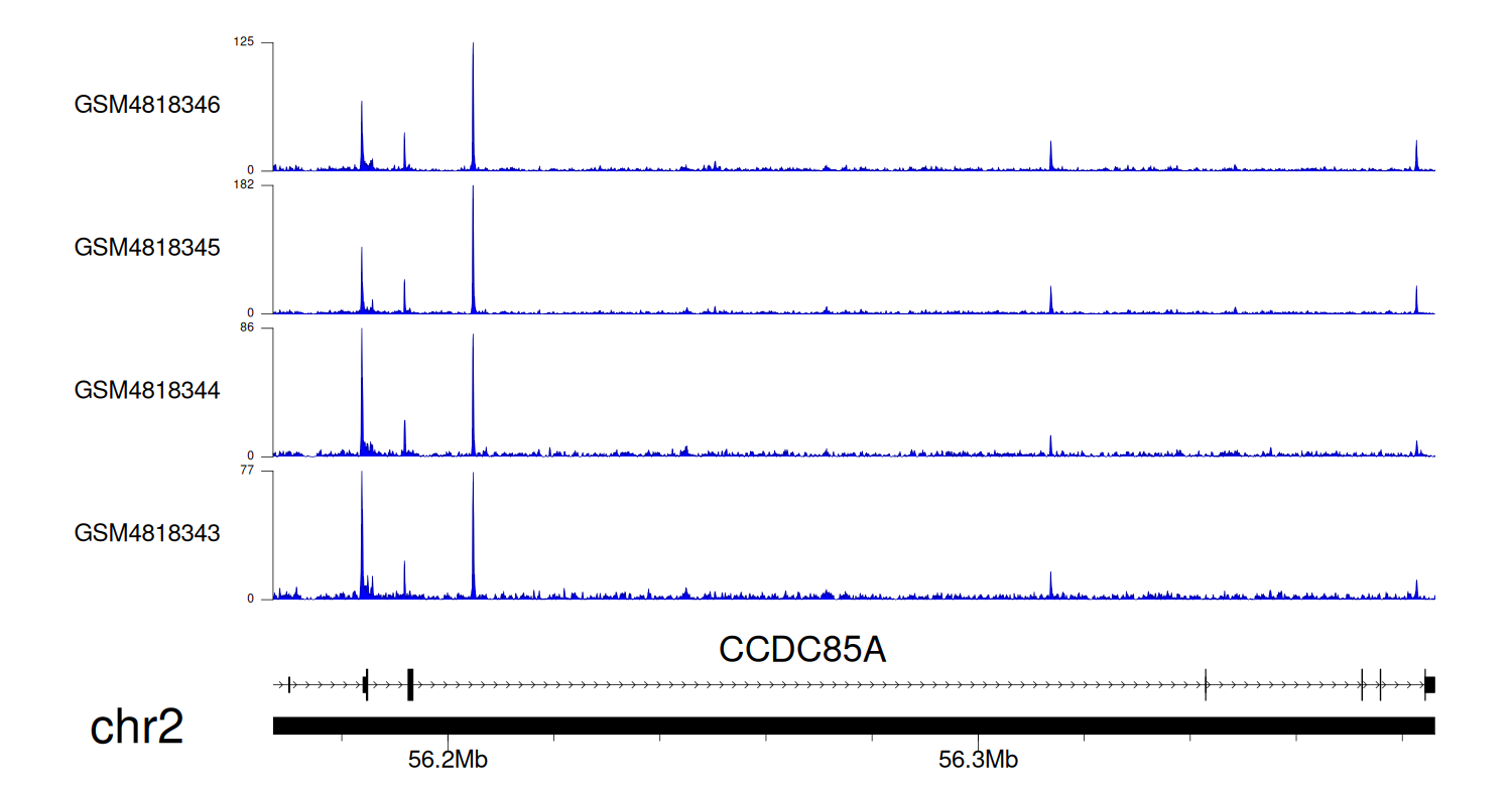 > Dataset: GSE131257 - CCDC85A peak across samples