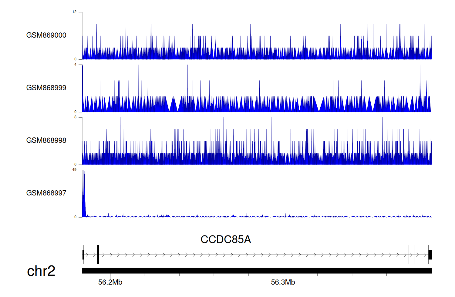 > Dataset: GSE68402 - CCDC85A peak across samples