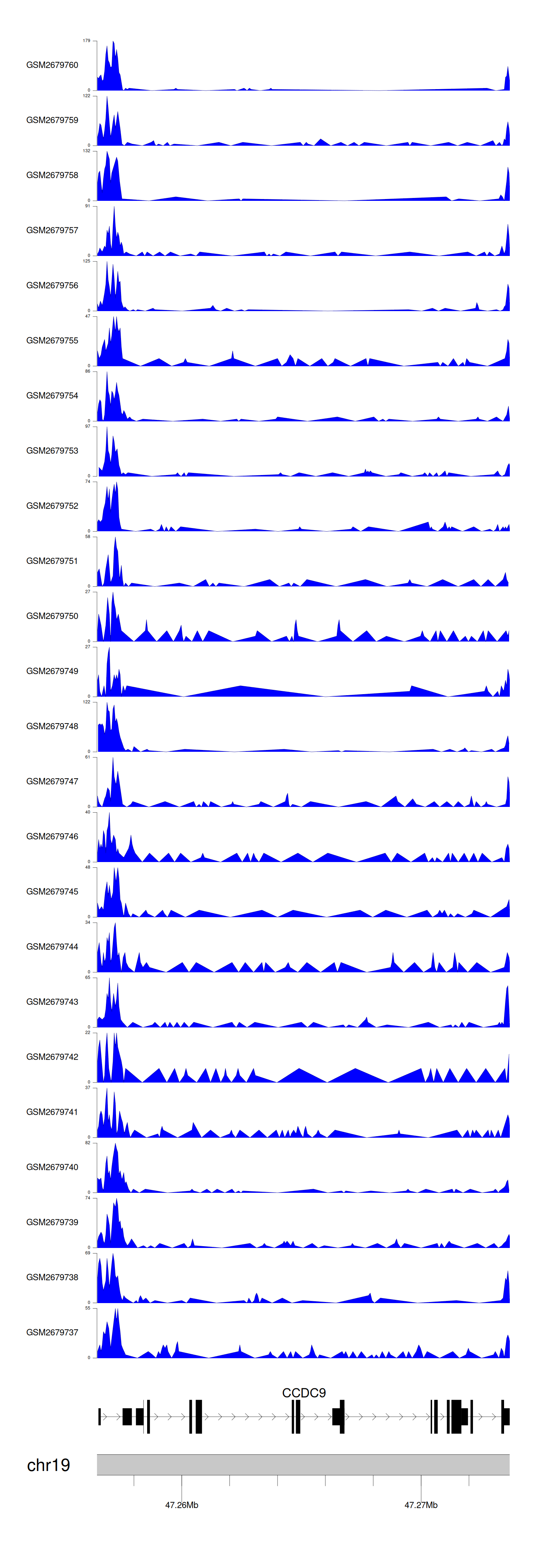 > Dataset: GSE165705 - CCDC9 peak across samples
