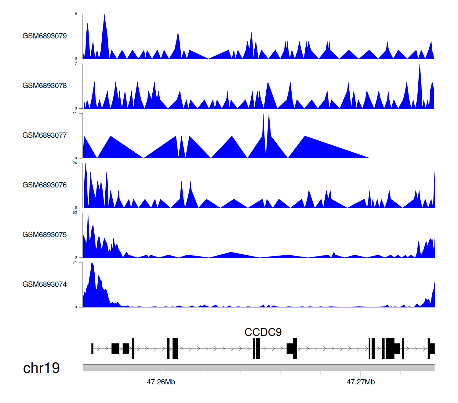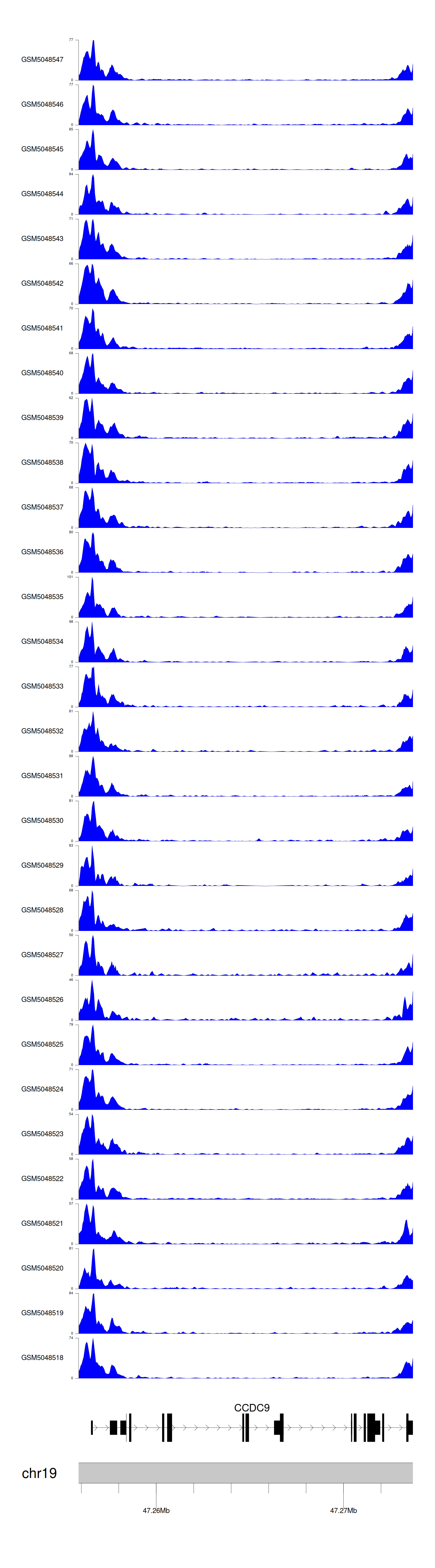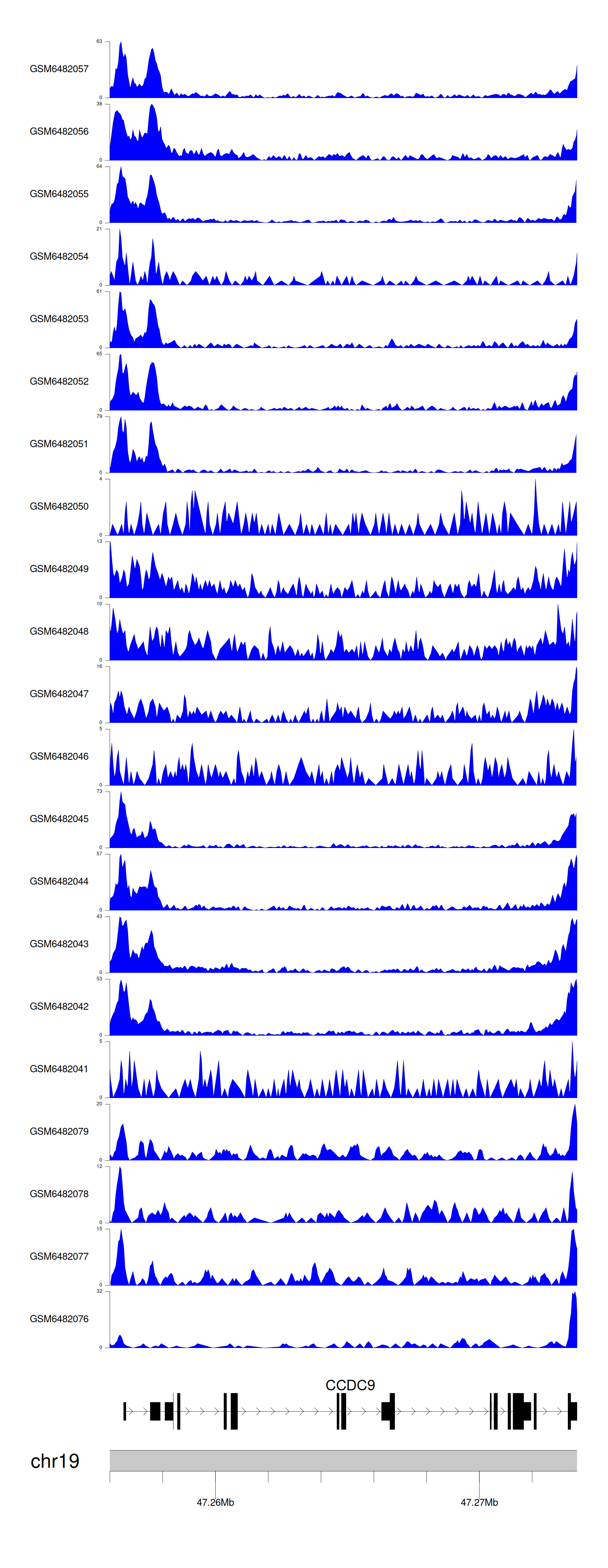 > Dataset: GSE165703 - CCDC9 peak across samples