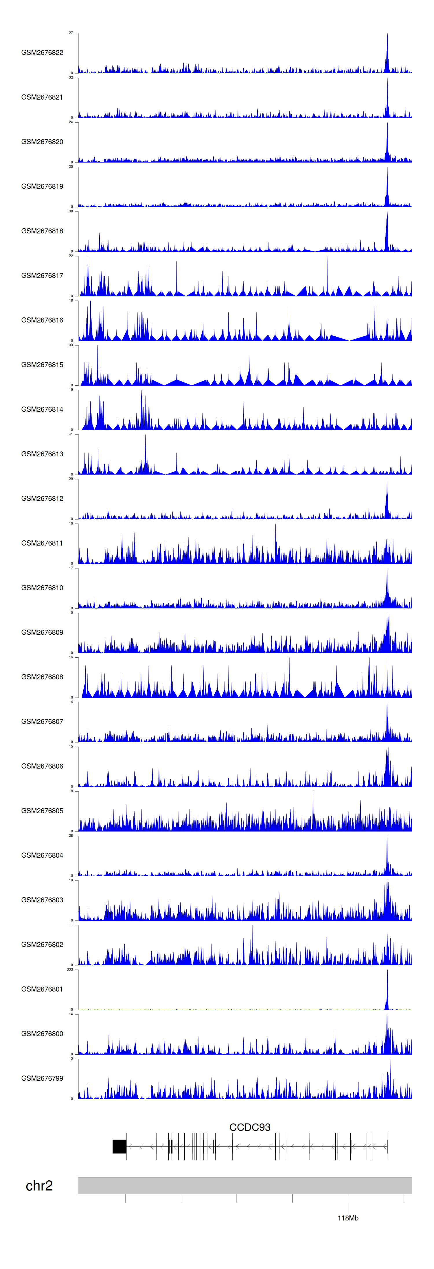 > Dataset: GSE100266 - CCDC93 peak across samples