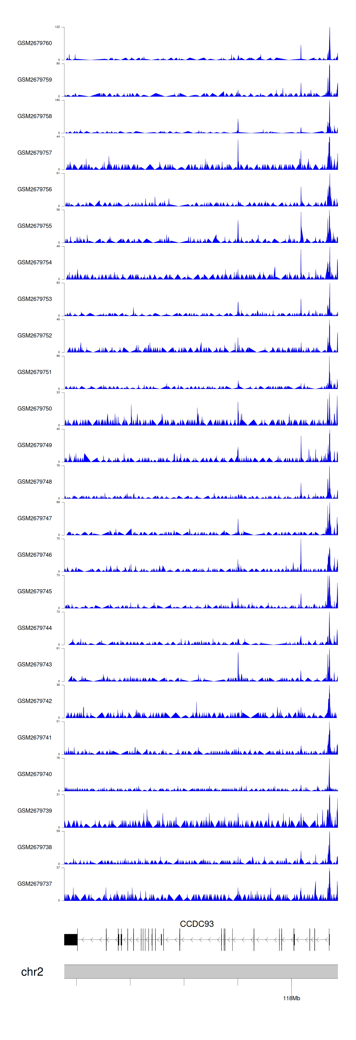 > Dataset: GSE30738 - CCDC93 peak across samples