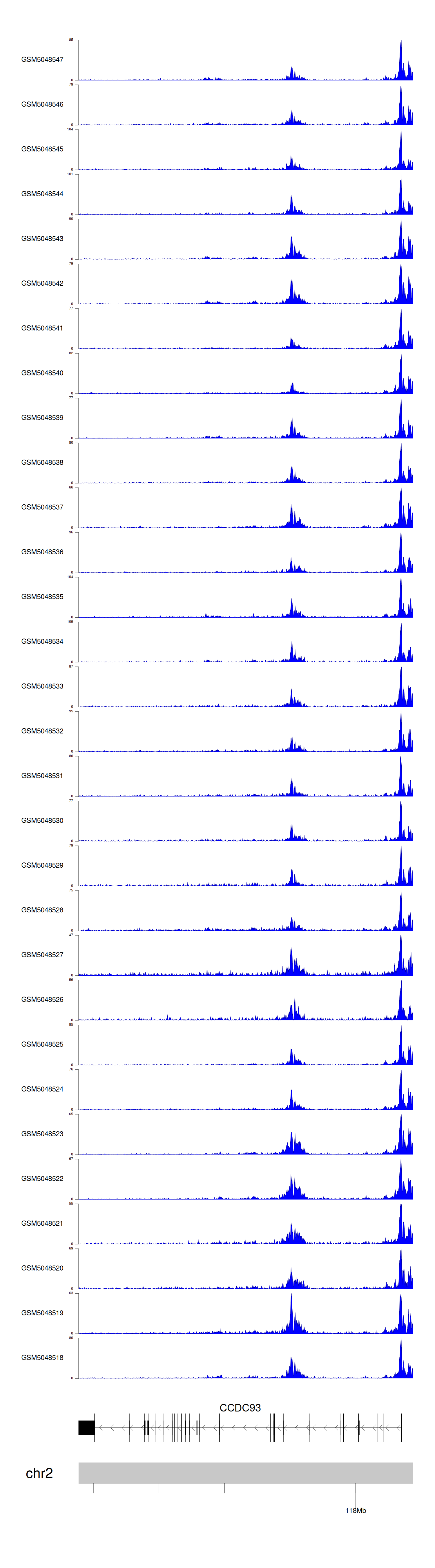 > Dataset: GSE165705 - CCDC93 peak across samples