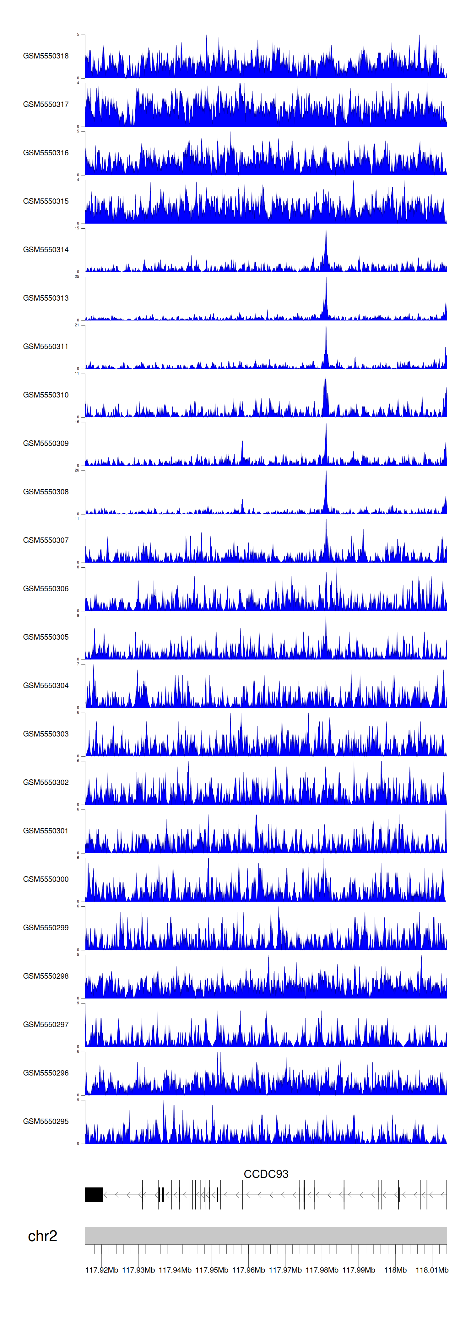 > Dataset: GSE143026 - CCDC93 peak across samples