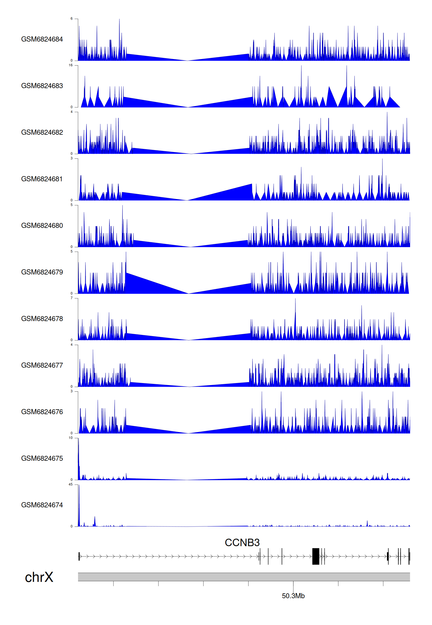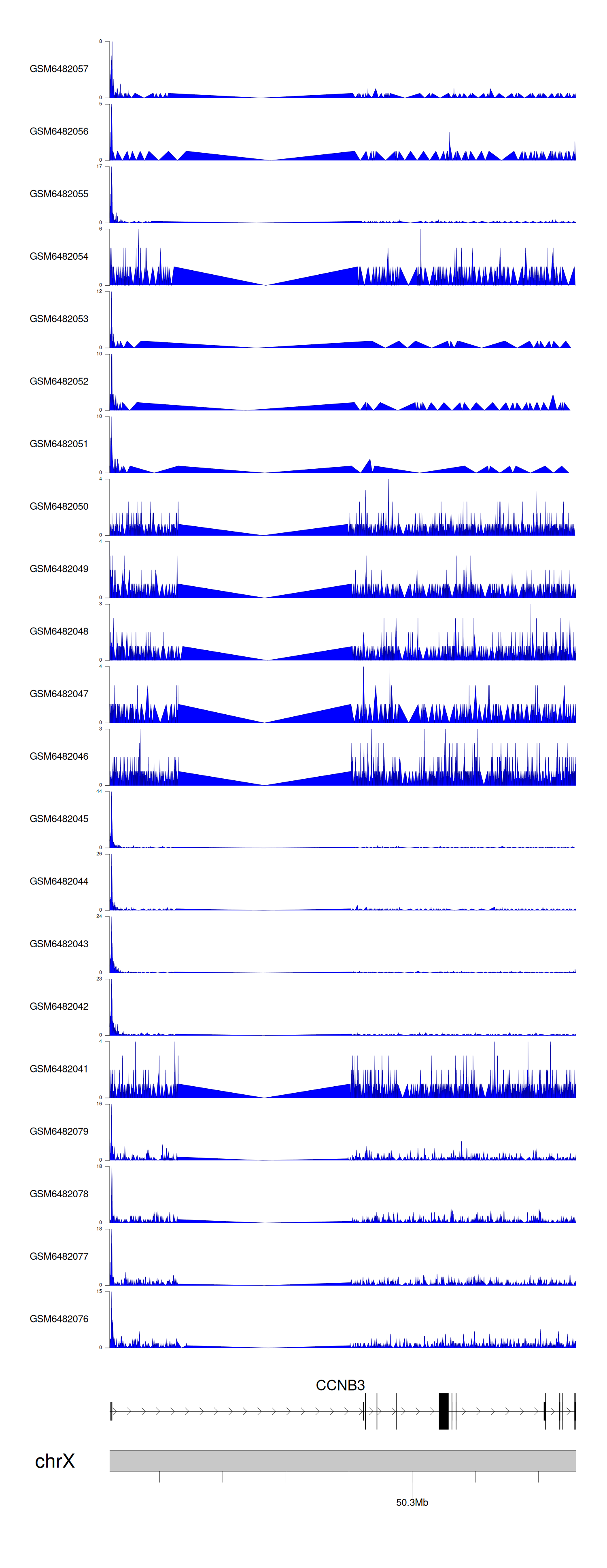 > Dataset: GSE165703 - CCNB3 peak across samples