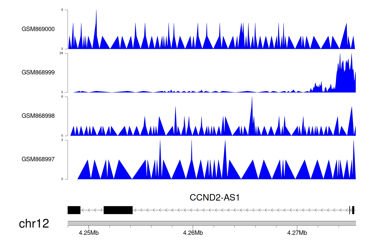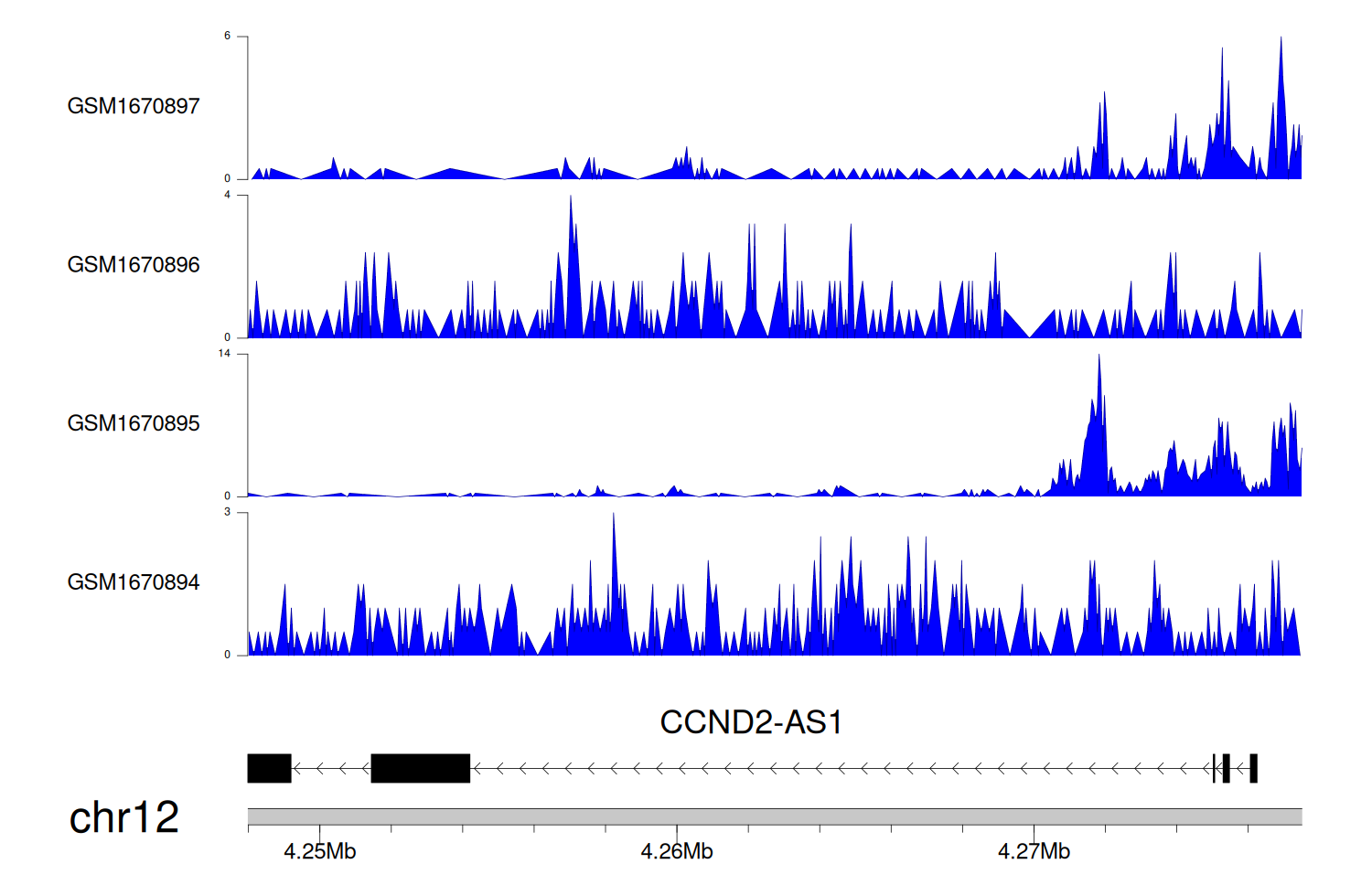 > Dataset: GSE68402 - CCND2-AS1 peak across samples