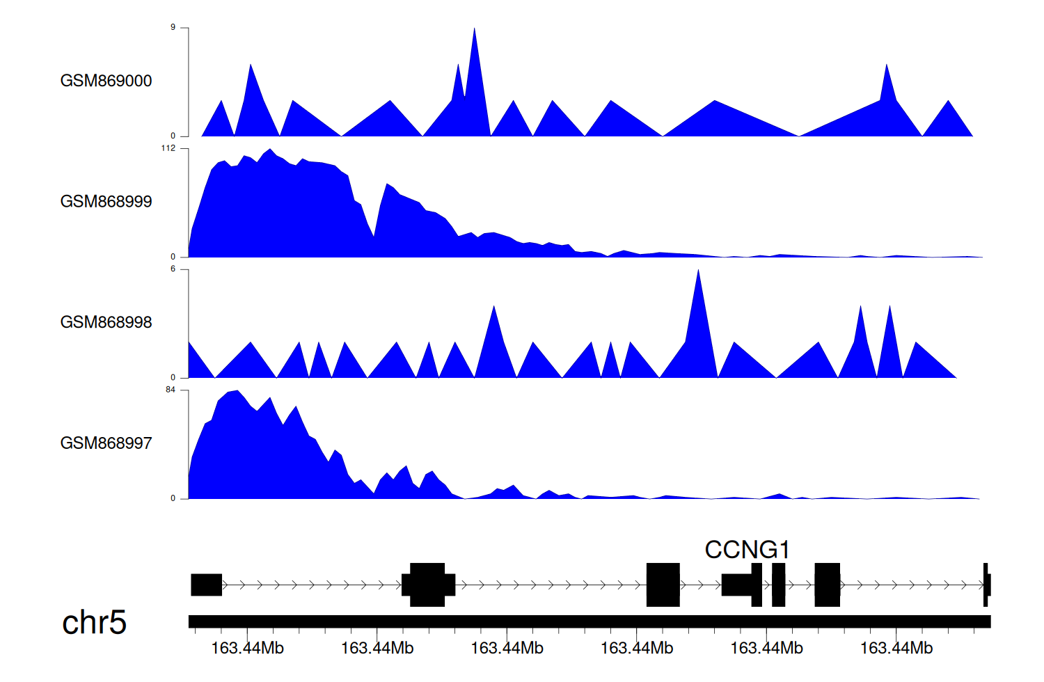 > Dataset: GSE68402 - CCNG1 peak across samples