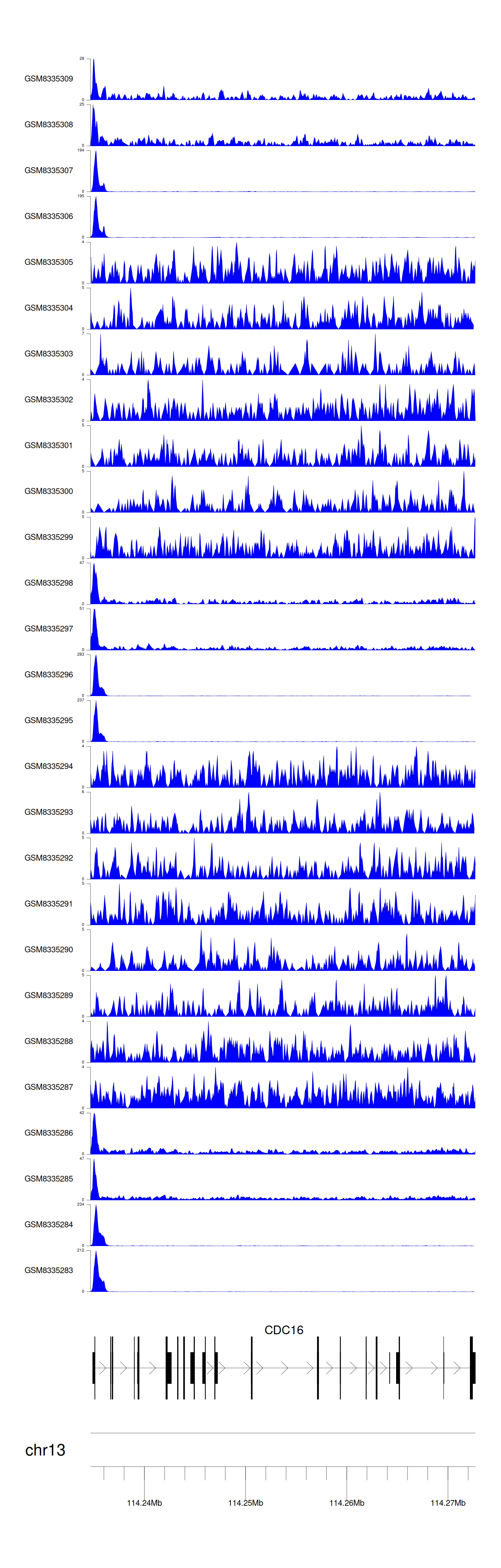 > Dataset: GSE270130 - CDC16 peak across samples
