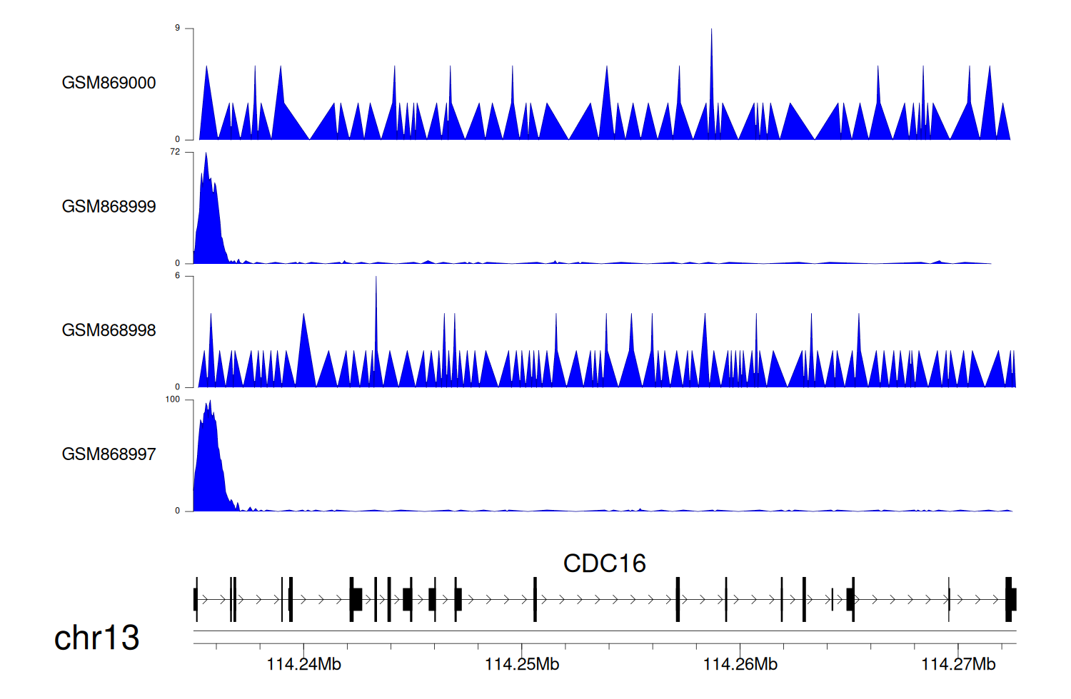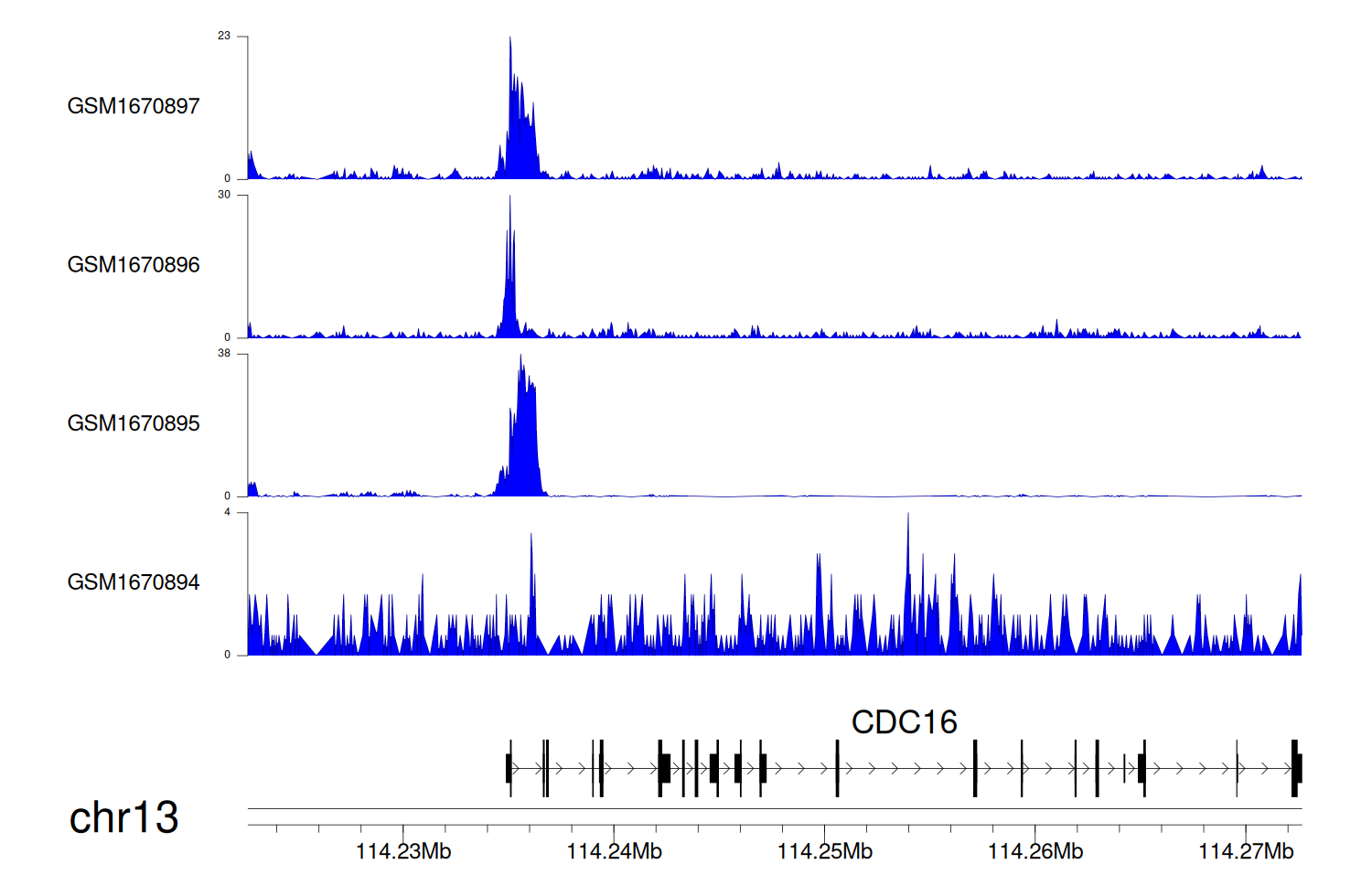 > Dataset: GSE68402 - CDC16 peak across samples