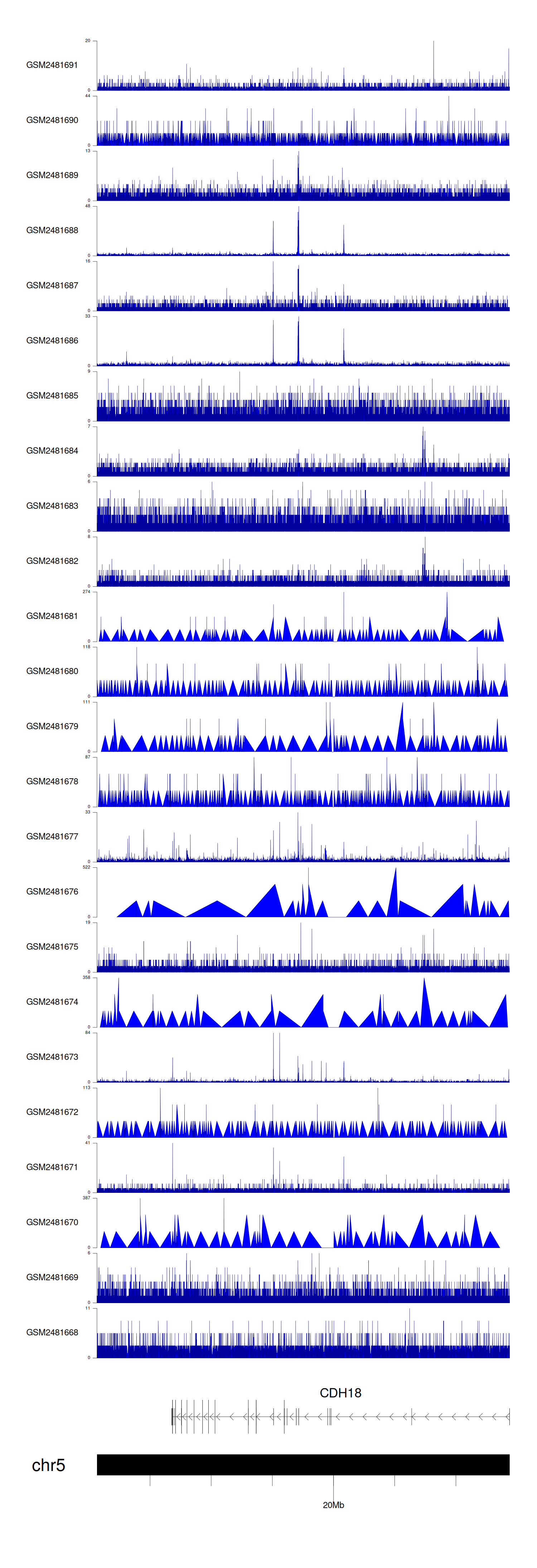 > Dataset: GSE94732 - CDH18 peak across samples