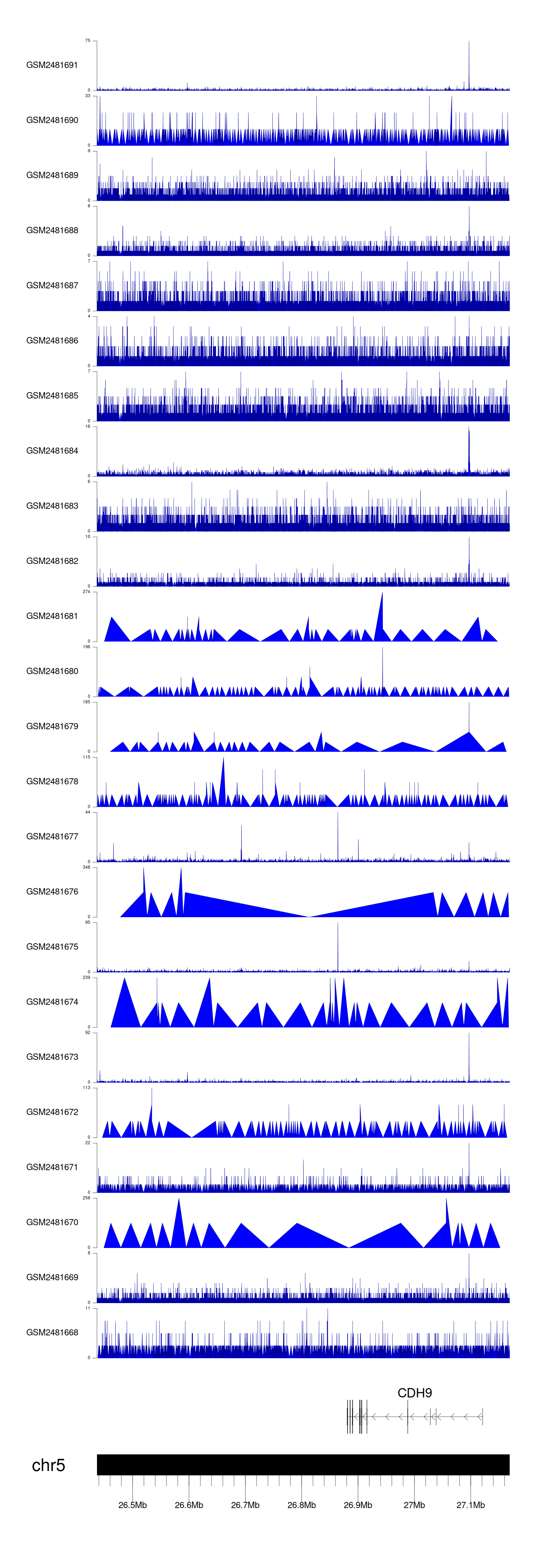 > Dataset: GSE94732 - CDH9 peak across samples