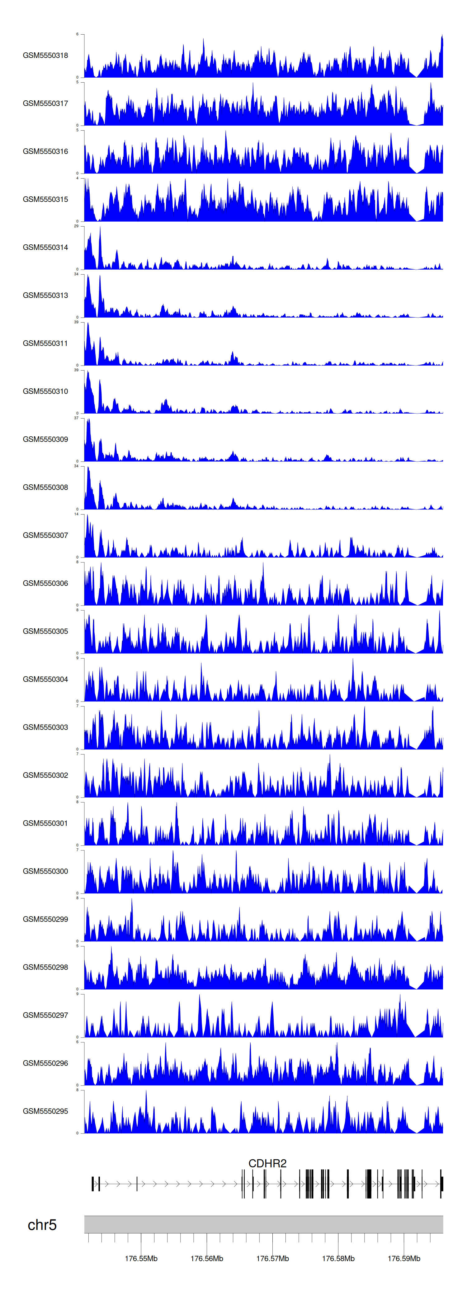 > Dataset: GSE143026 - CDHR2 peak across samples