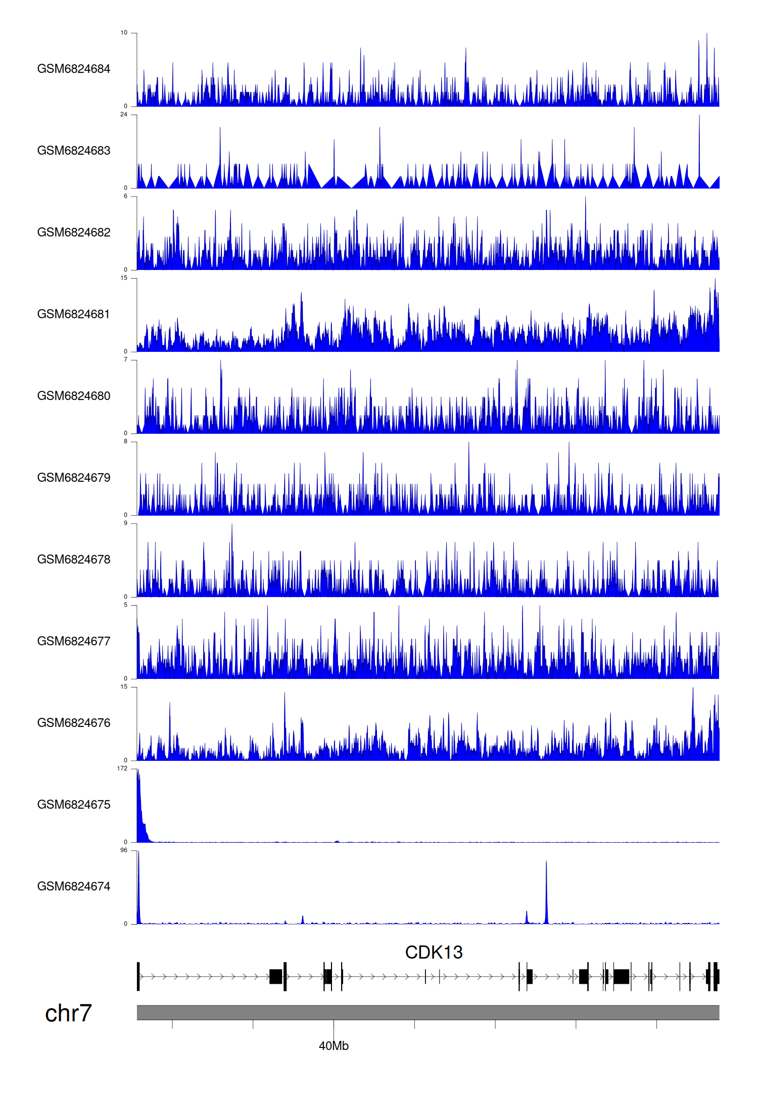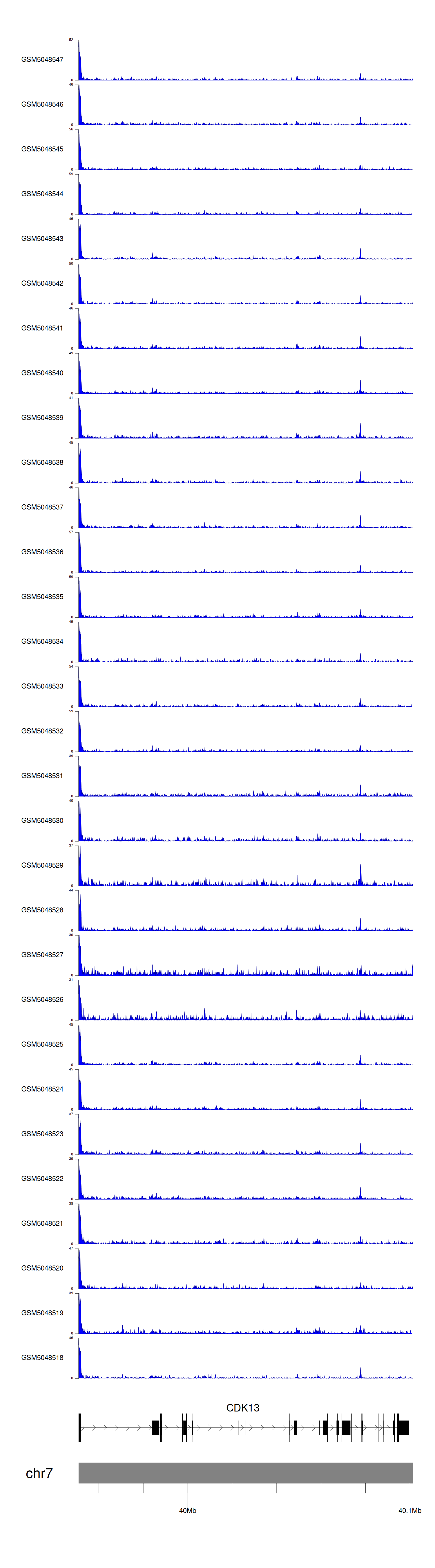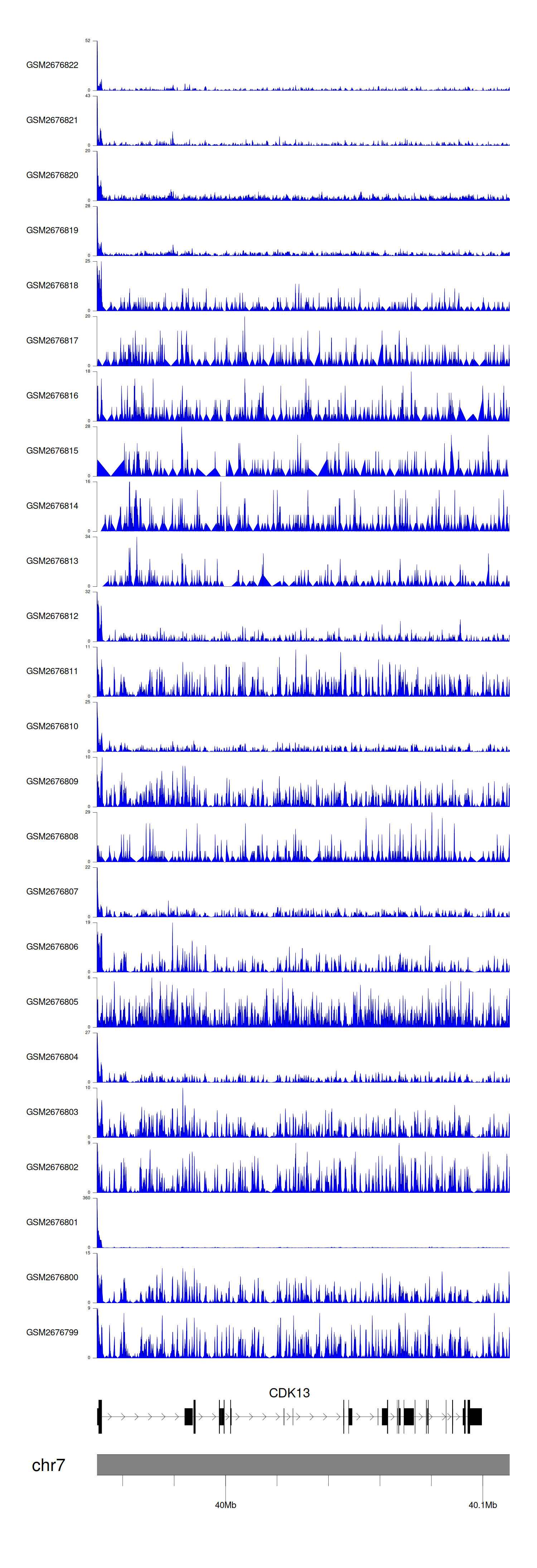> Dataset: GSE30738 - CDK13 peak across samples