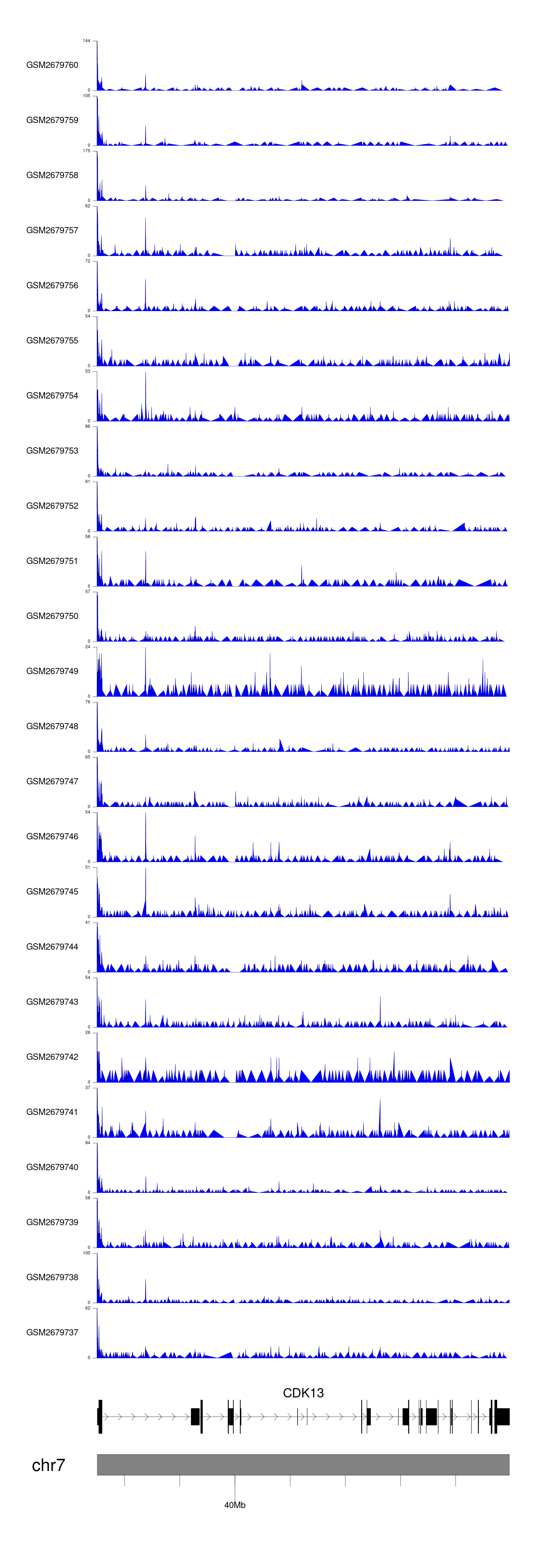 > Dataset: GSE144329 - CDK13 peak across samples