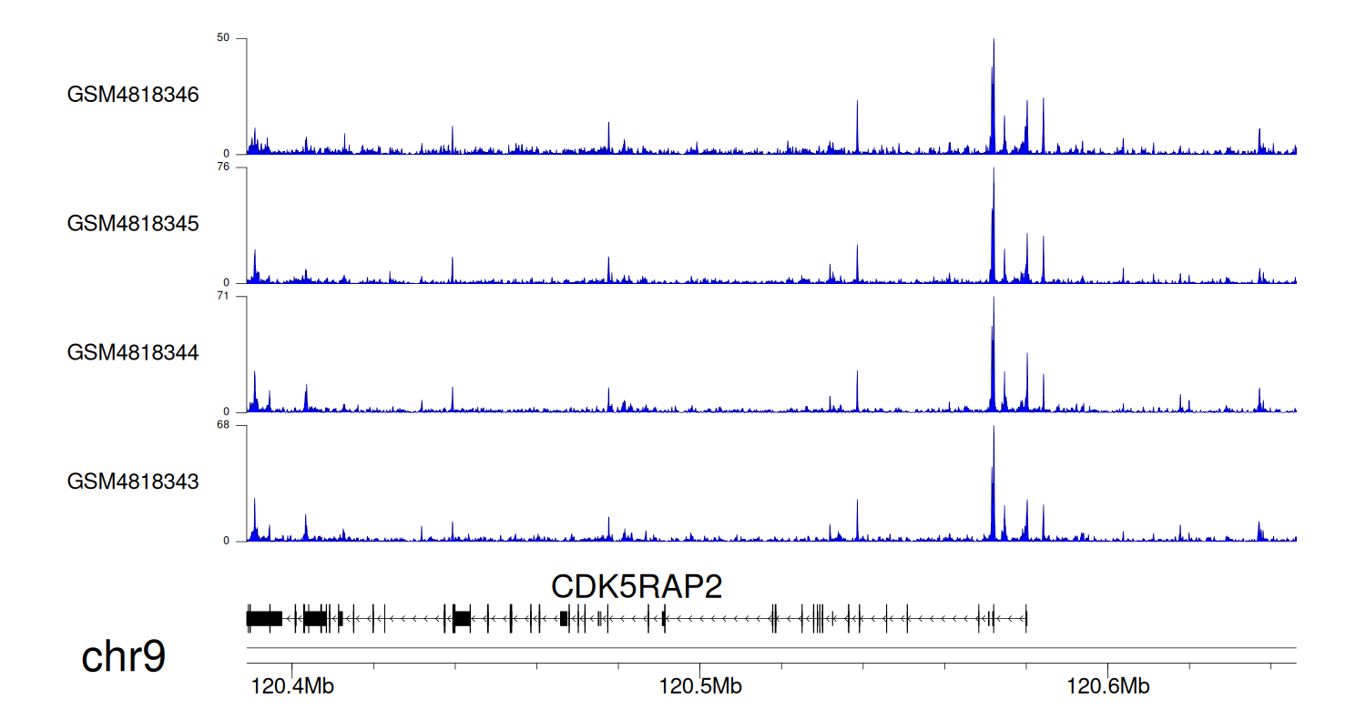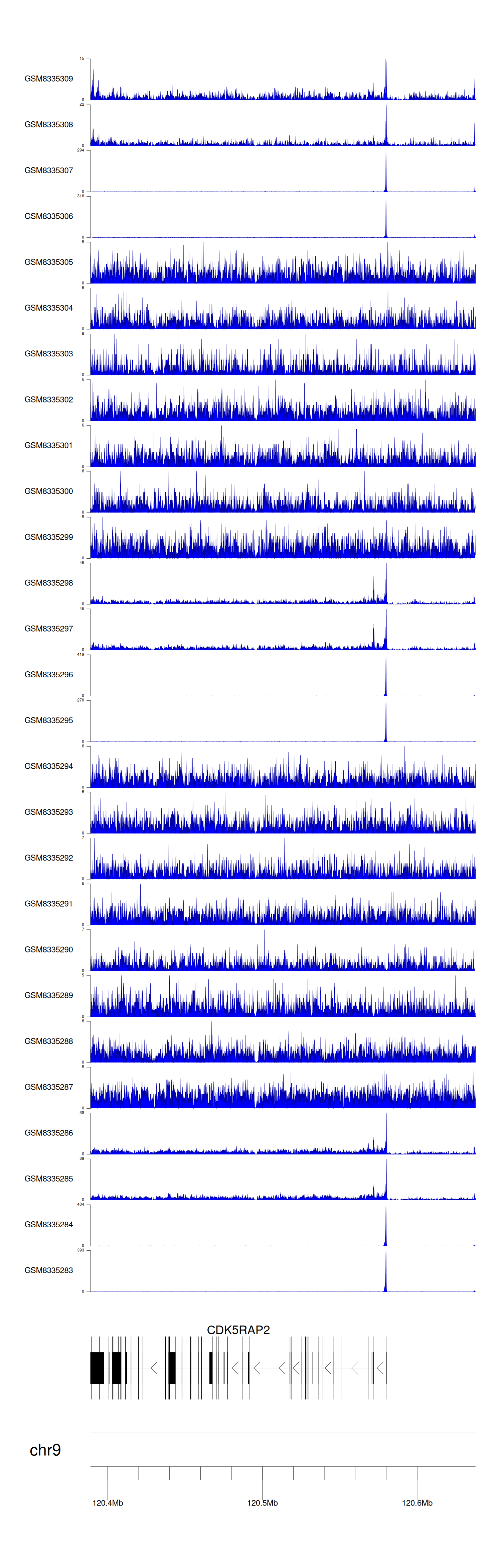 > Dataset: GSE131257 - CDK5RAP2 peak across samples