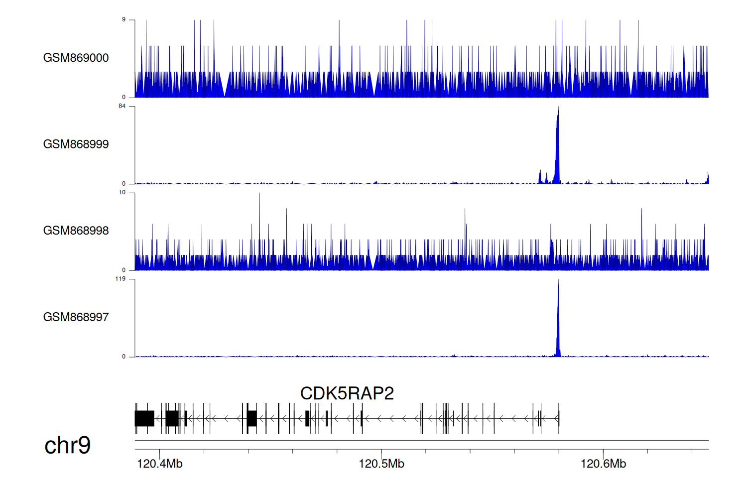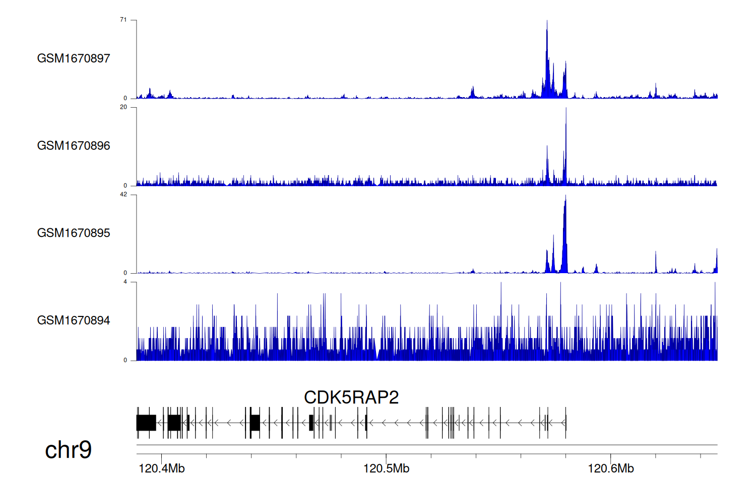 > Dataset: GSE68402 - CDK5RAP2 peak across samples