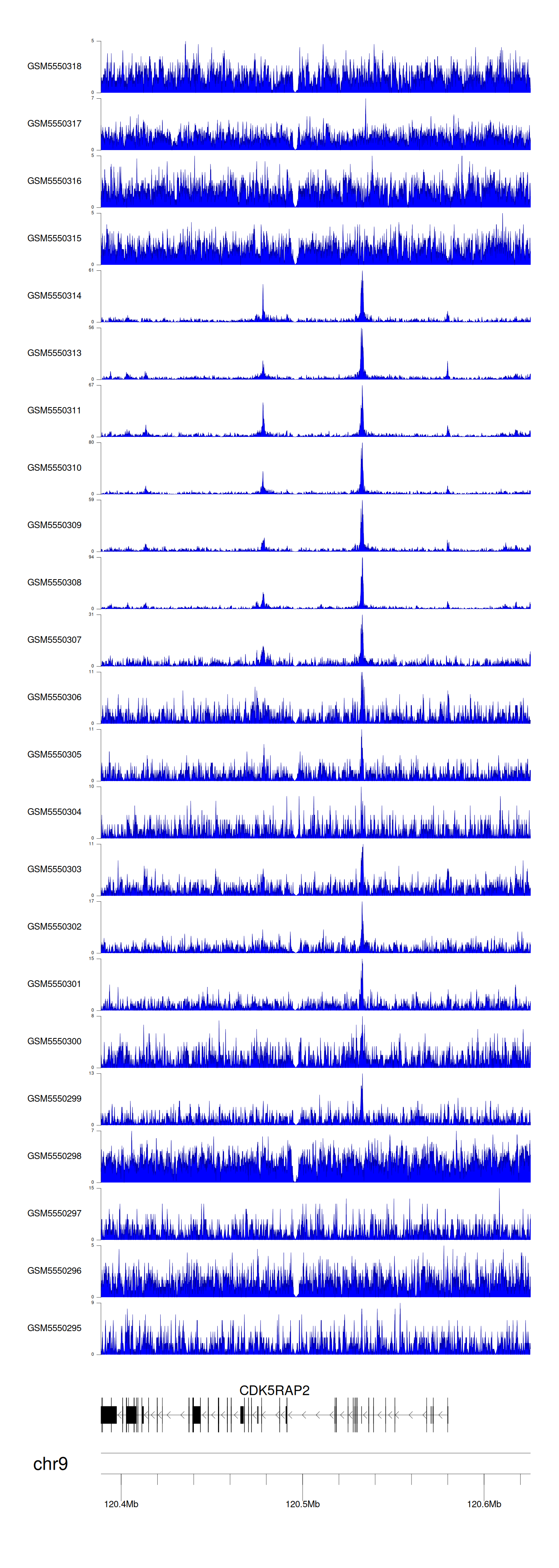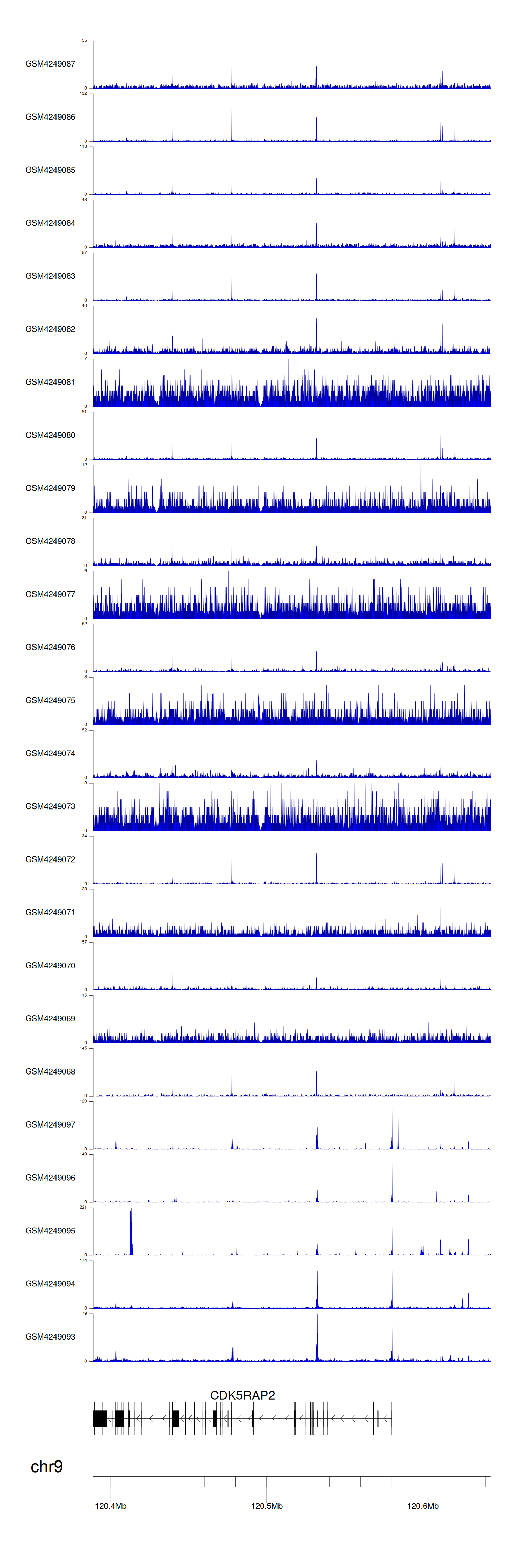 > Dataset: GSE143026 - CDK5RAP2 peak across samples