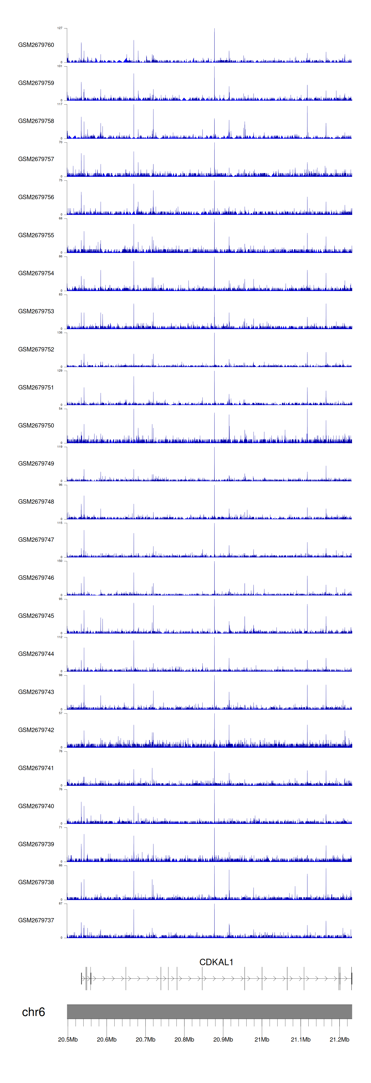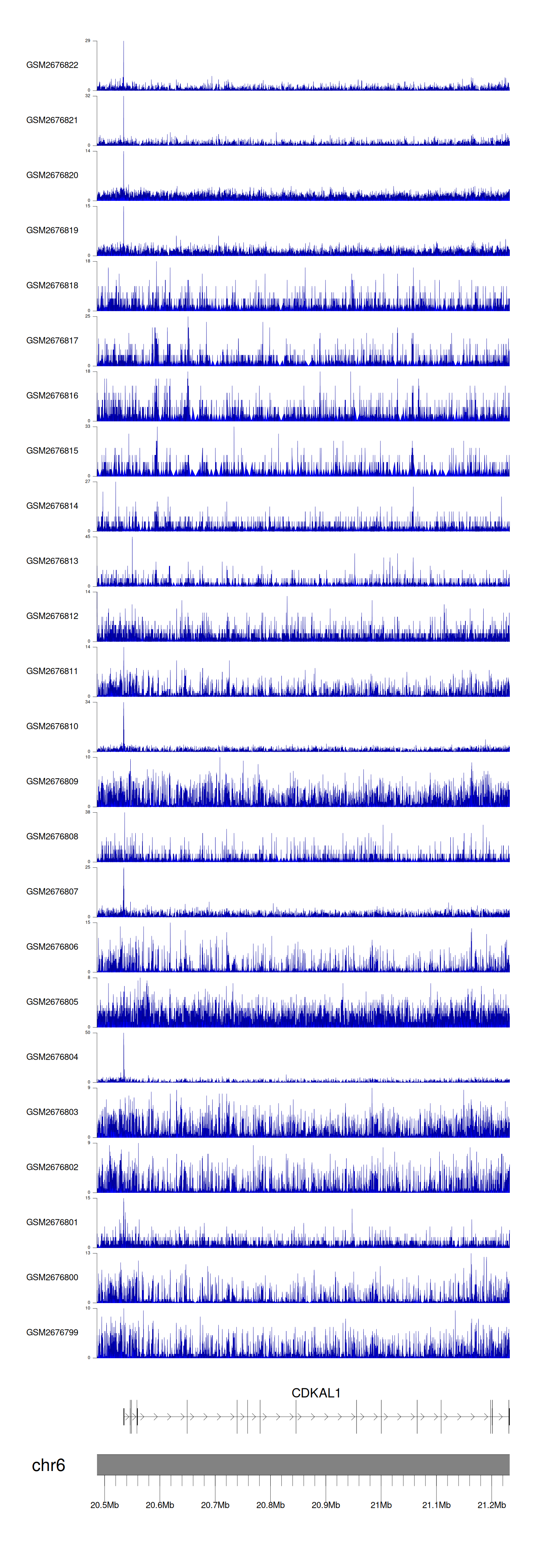> Dataset: GSE100376 - CDKAL1 peak across samples