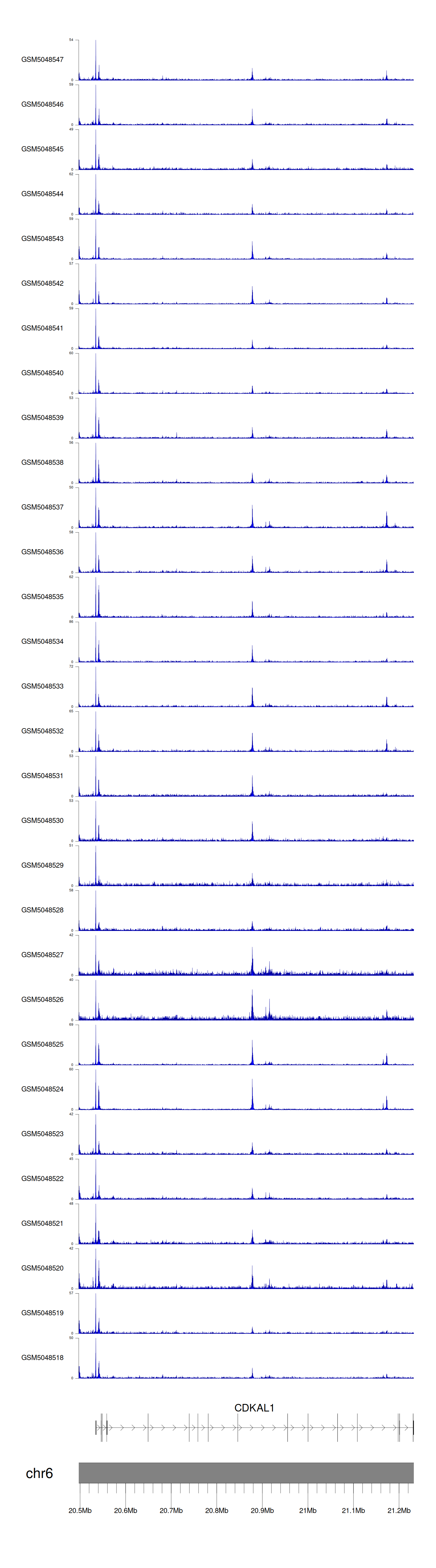 > Dataset: GSE30738 - CDKAL1 peak across samples