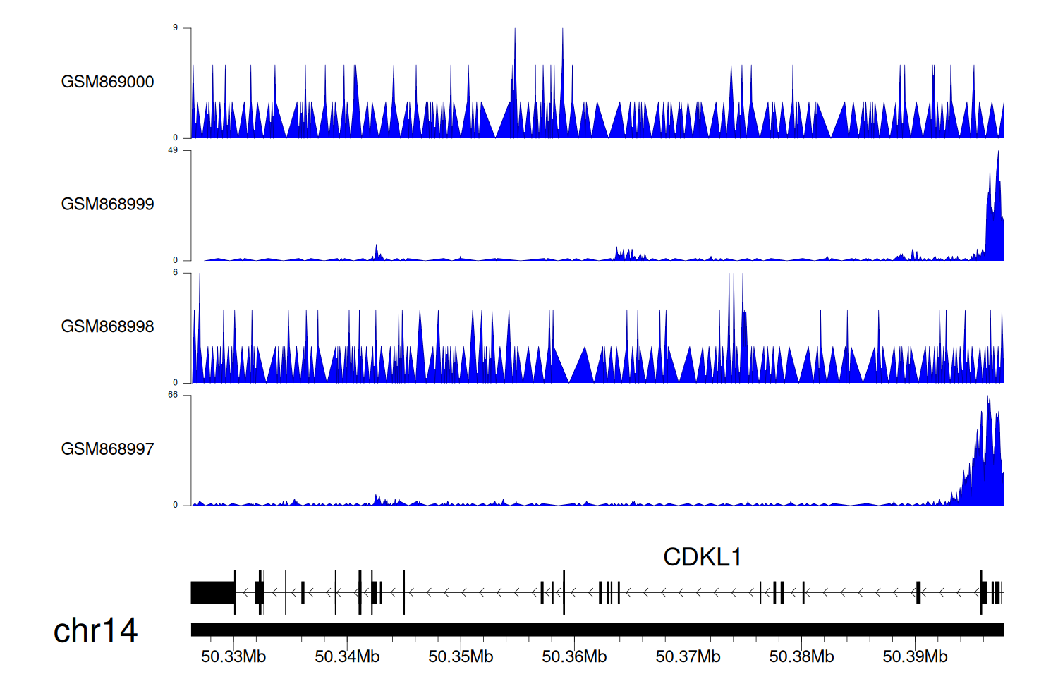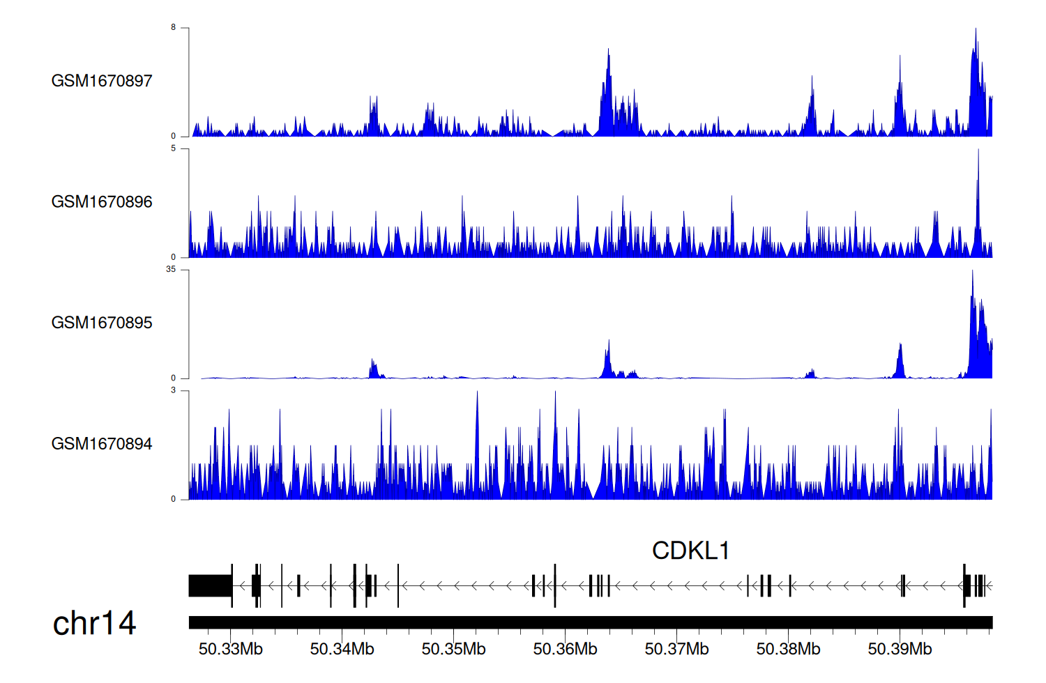 > Dataset: GSE68402 - CDKL1 peak across samples