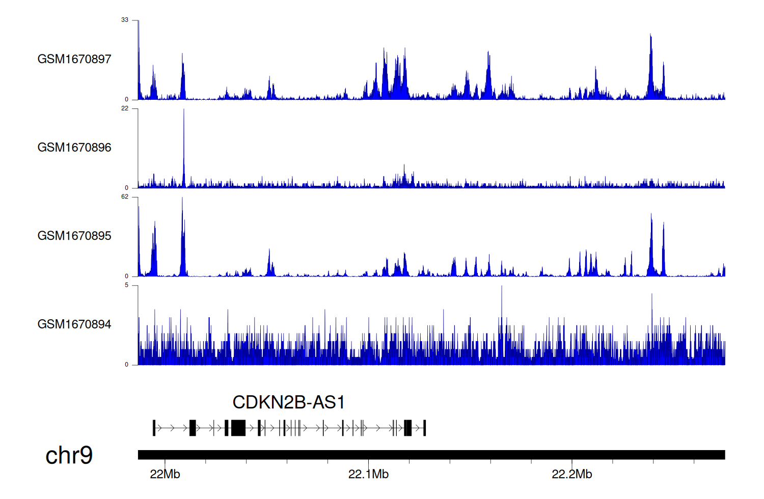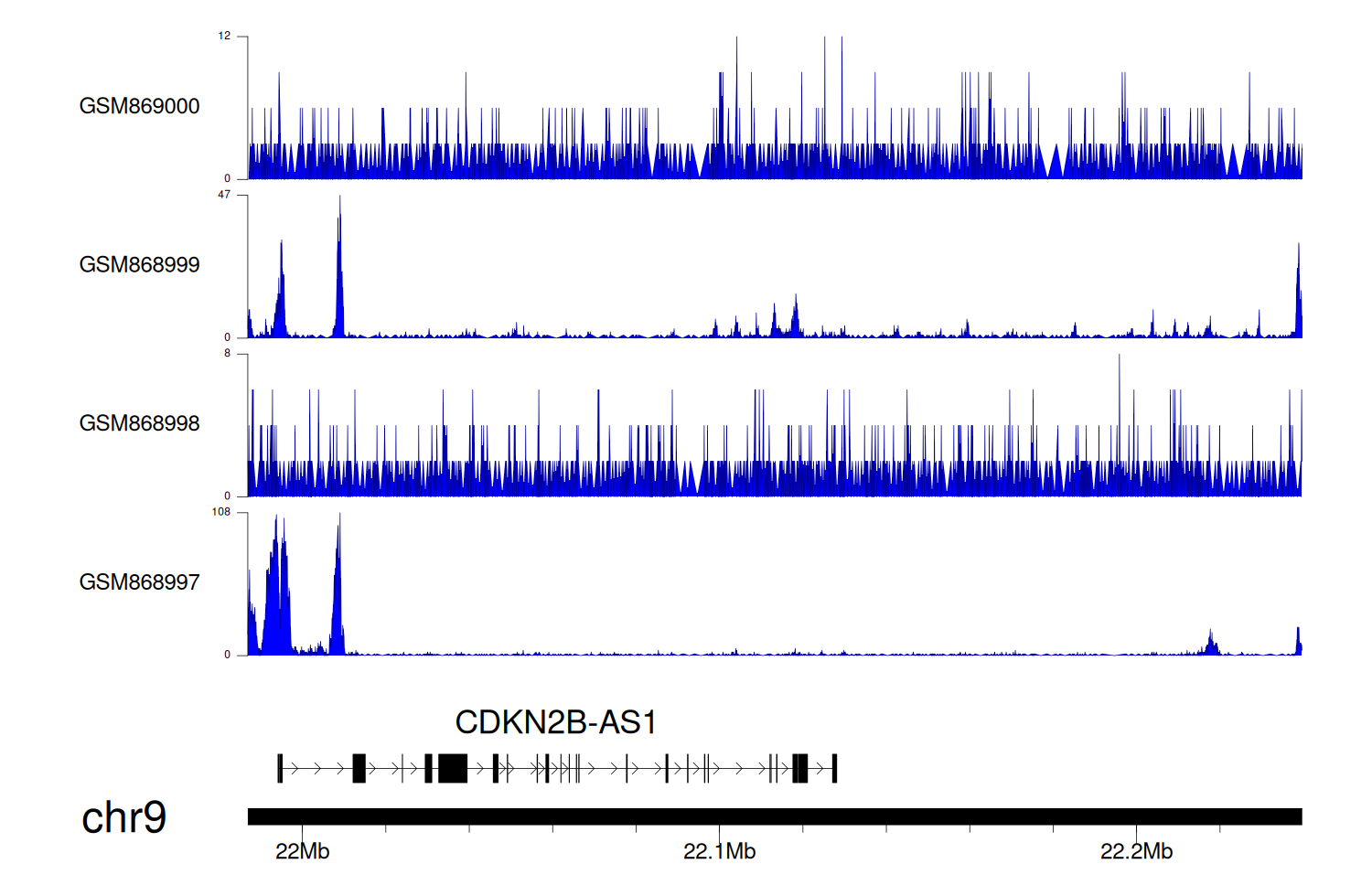 > Dataset: GSE100400 - CDKN2B-AS1 peak across samples