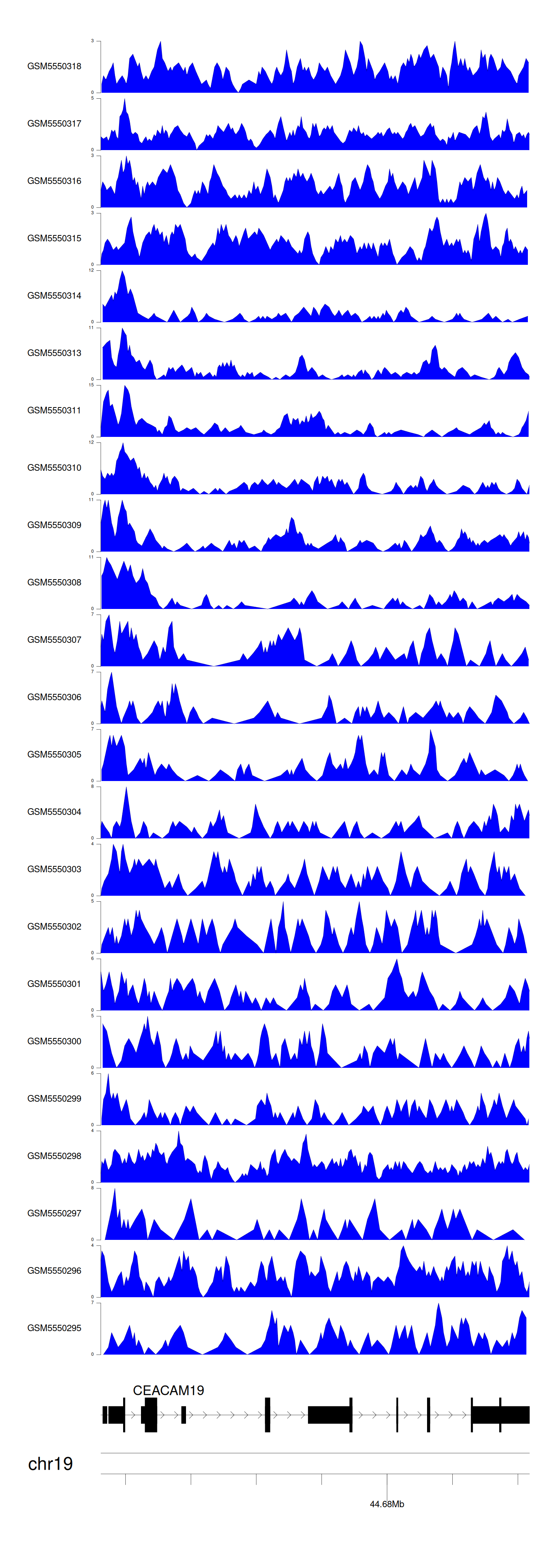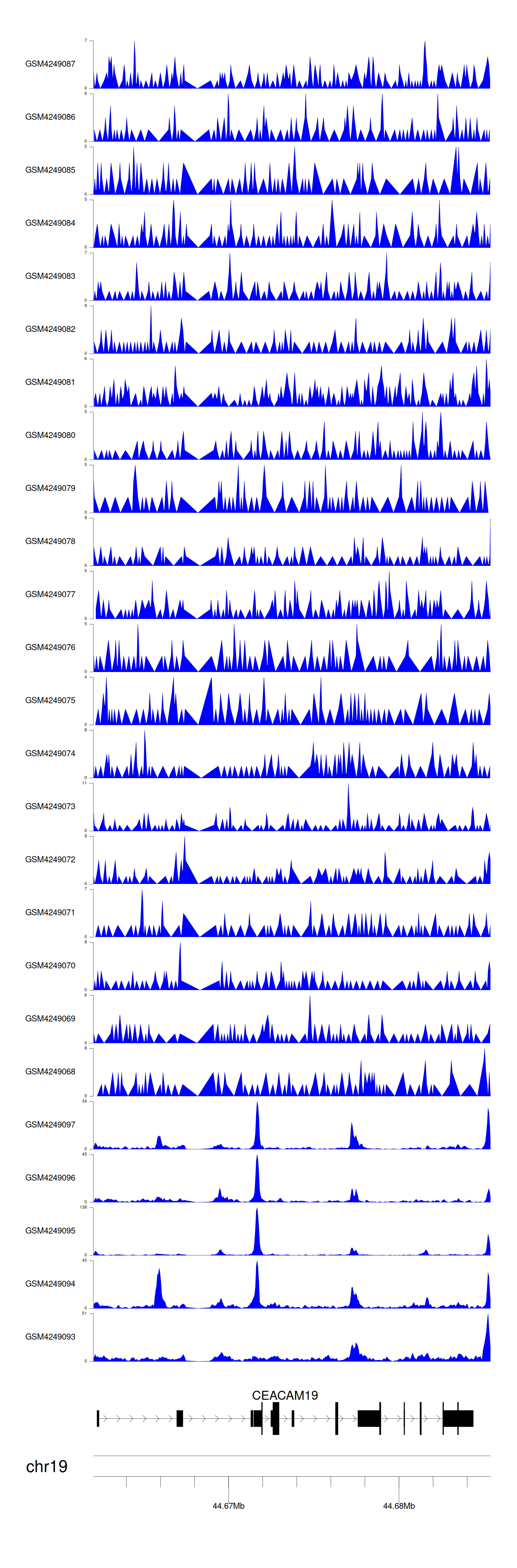 > Dataset: GSE143026 - CEACAM19 peak across samples