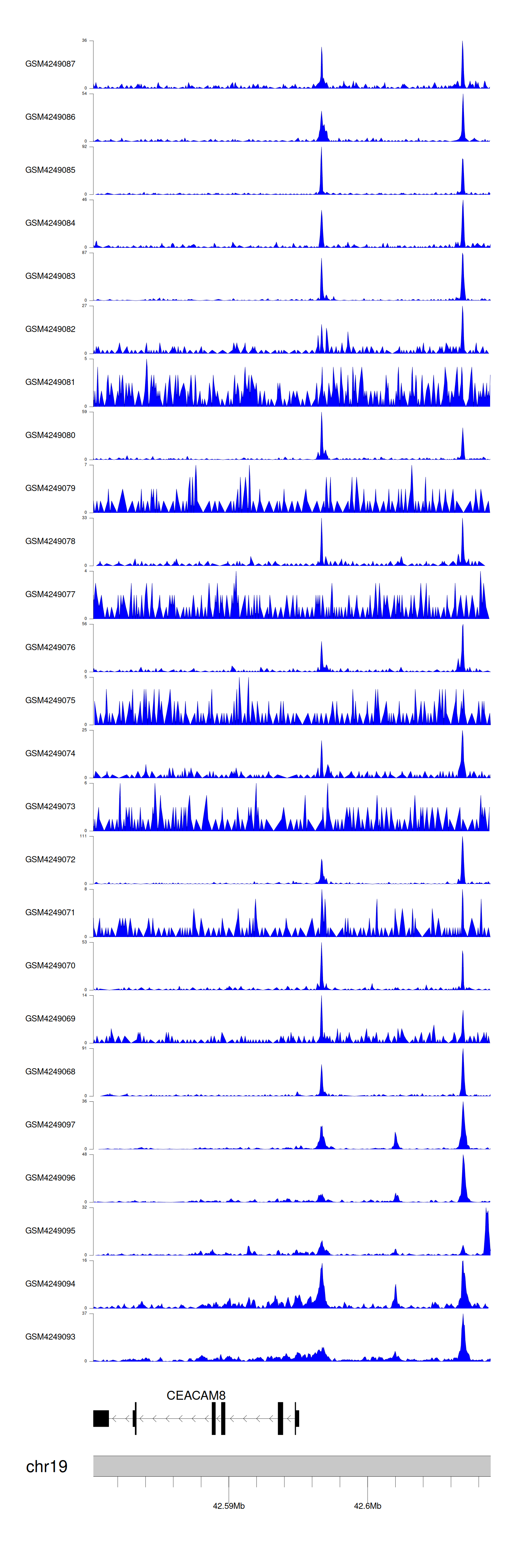 > Dataset: GSE143026 - CEACAM8 peak across samples