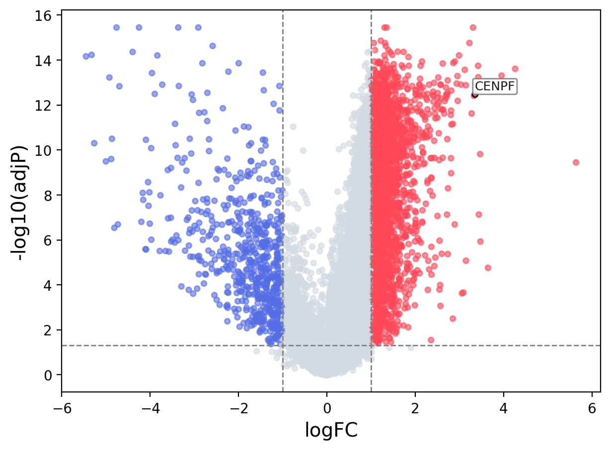 When the query gene is differentially changed in the dataset, a volcano/bar plot will be displayed.