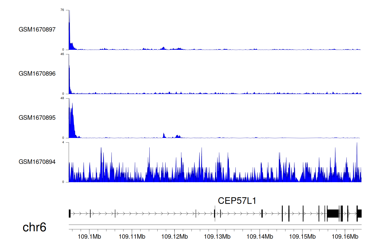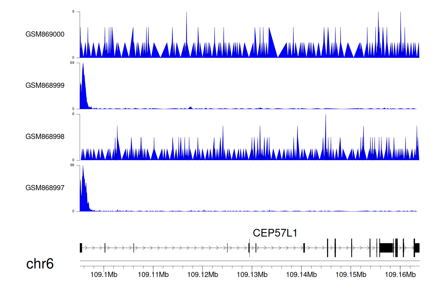 > Dataset: GSE68402 - CEP57L1 peak across samples