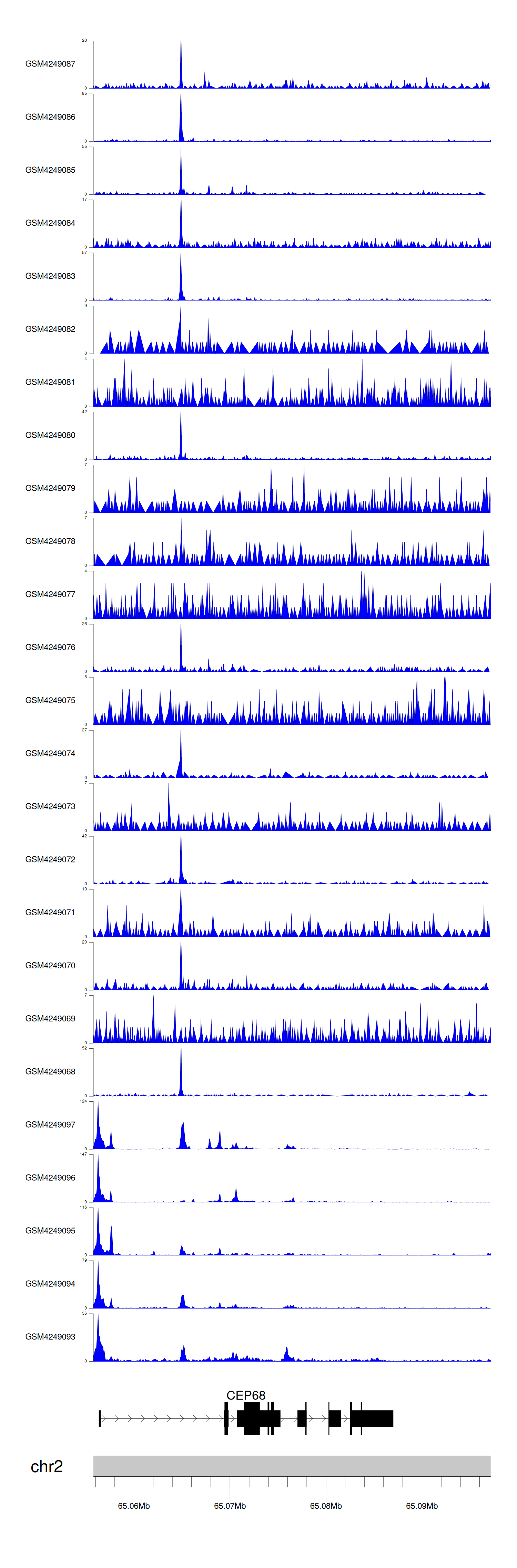> Dataset: GSE143026 - CEP68 peak across samples