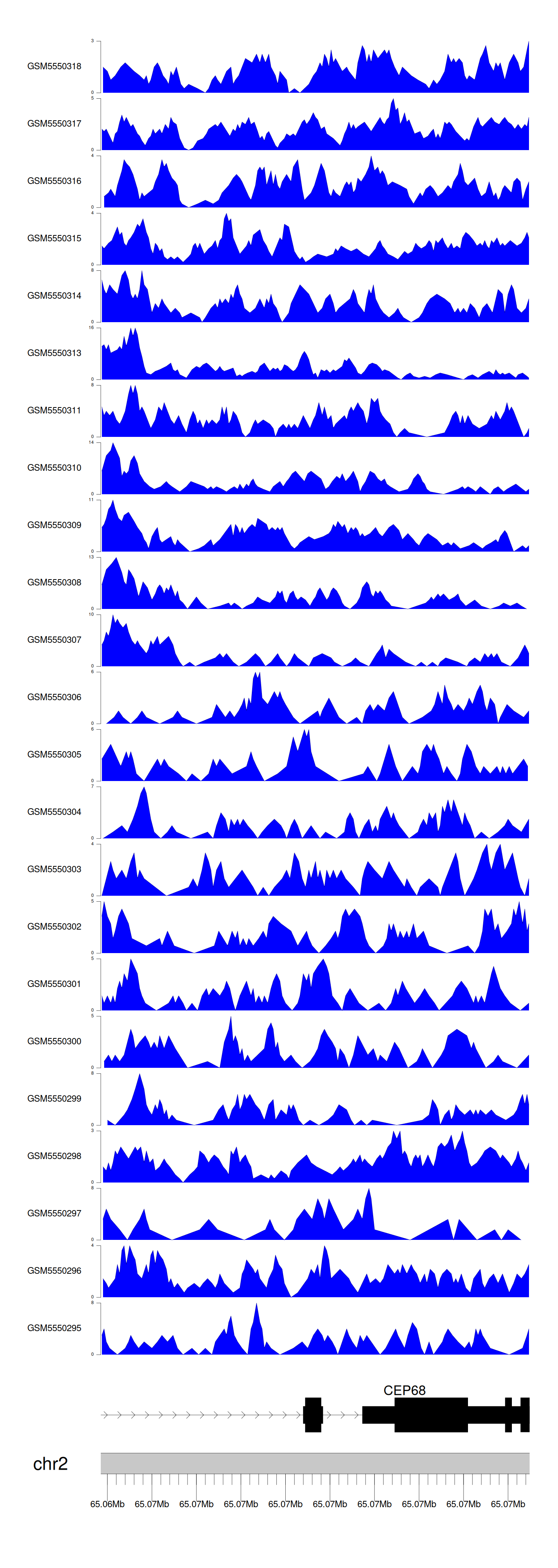 > Dataset: GSE183048 - CEP68 peak across samples