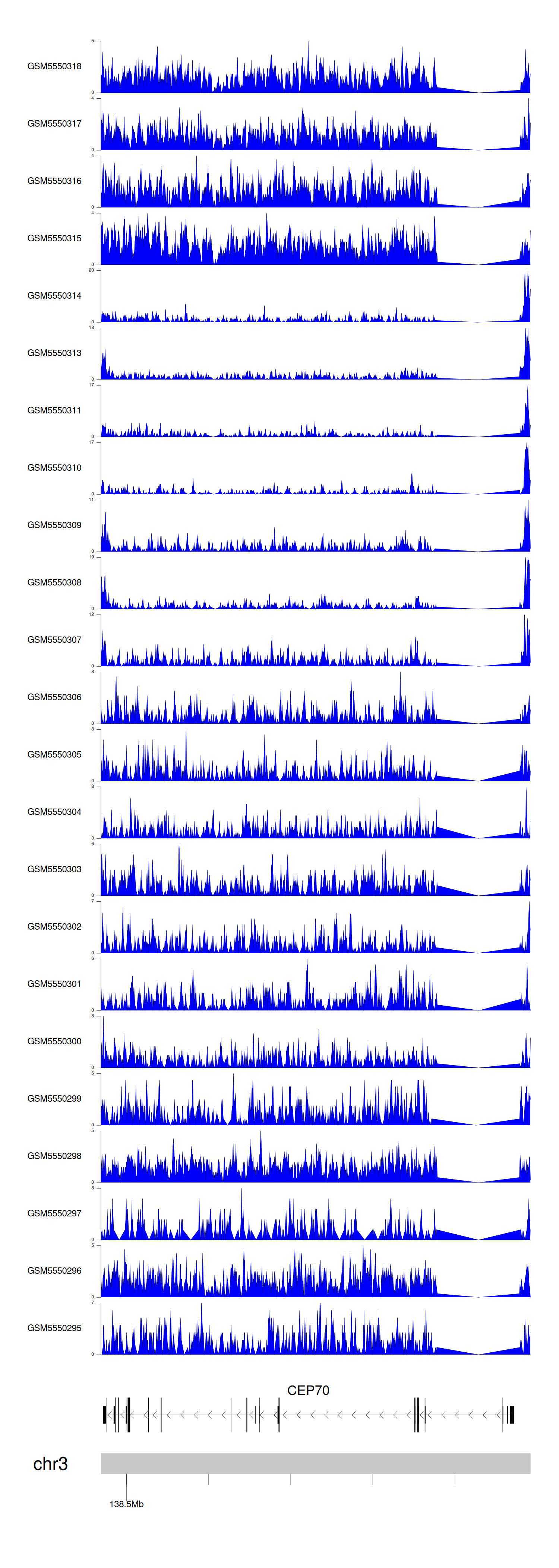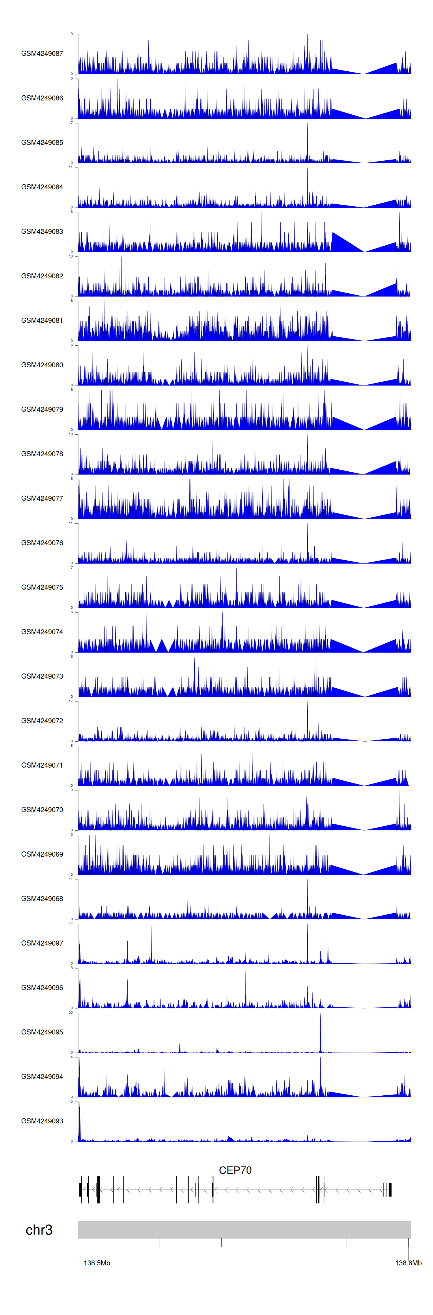 > Dataset: GSE143026 - CEP70 peak across samples