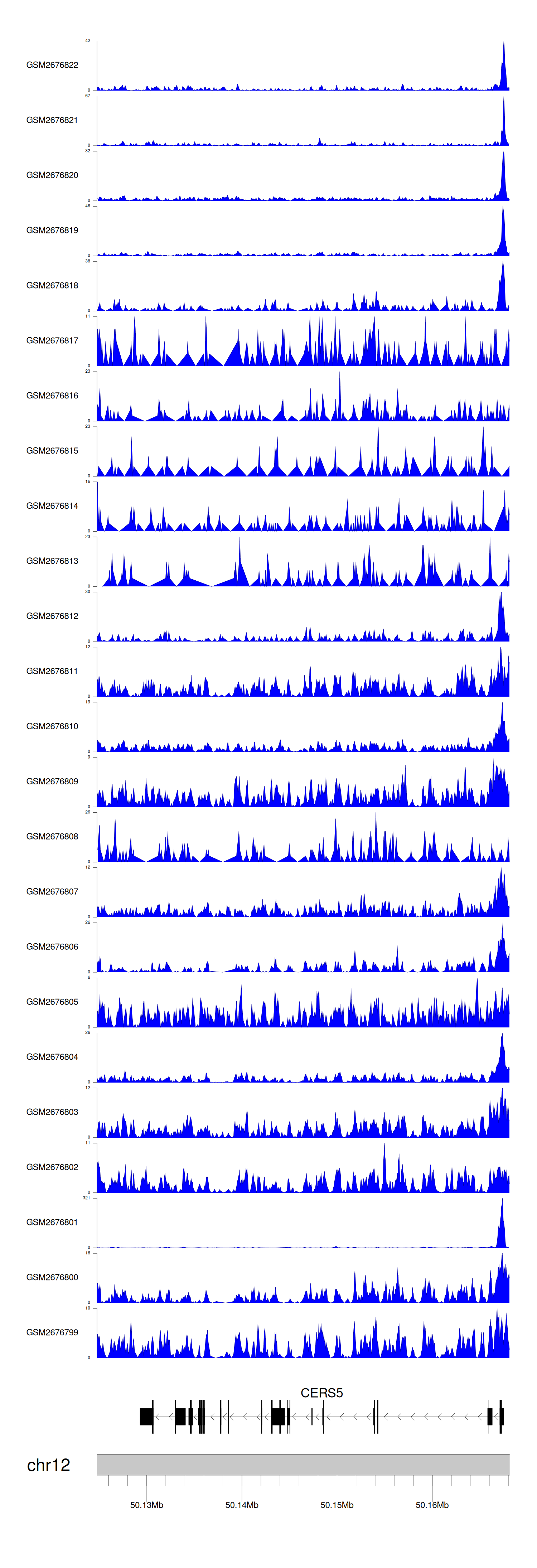 > Dataset: GSE144329 - CERS5 peak across samples