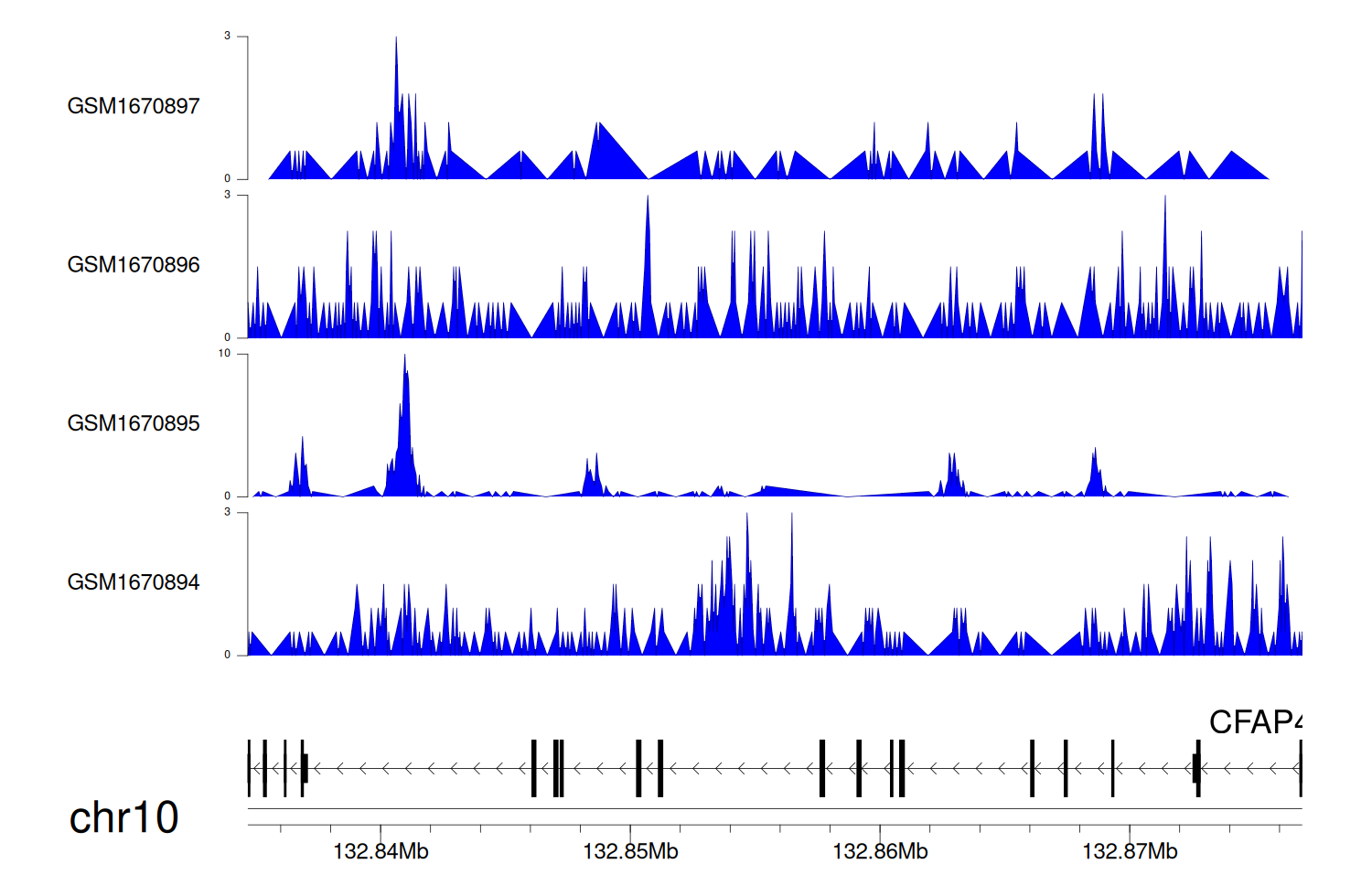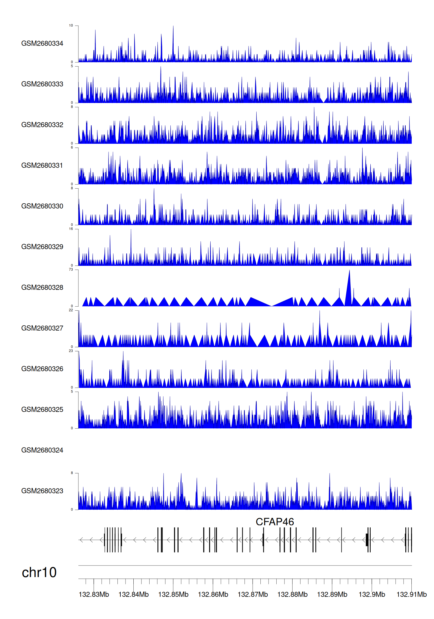 > Dataset: GSE100400 - CFAP46 peak across samples