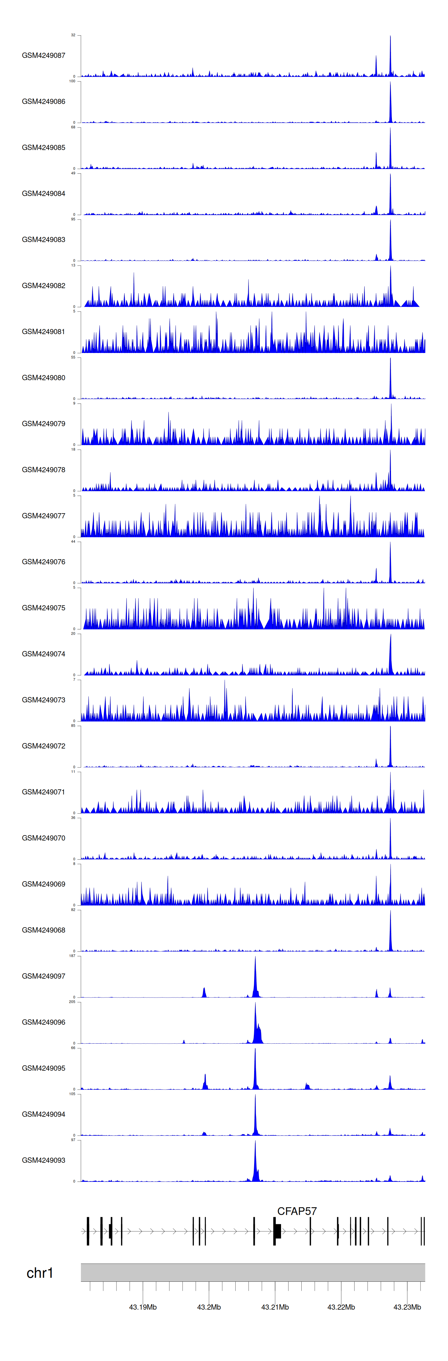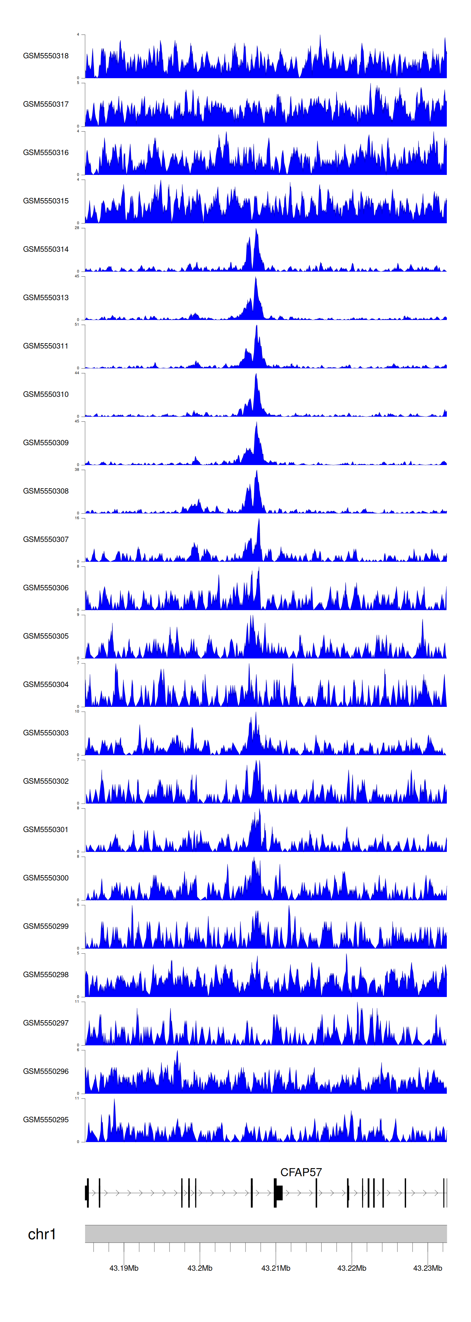 > Dataset: GSE143026 - CFAP57 peak across samples