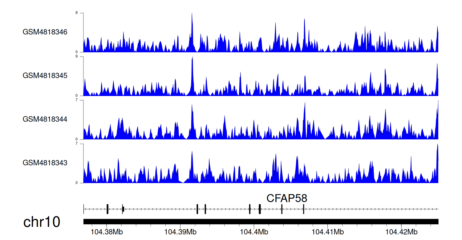 > Dataset: GSE131257 - CFAP58 peak across samples