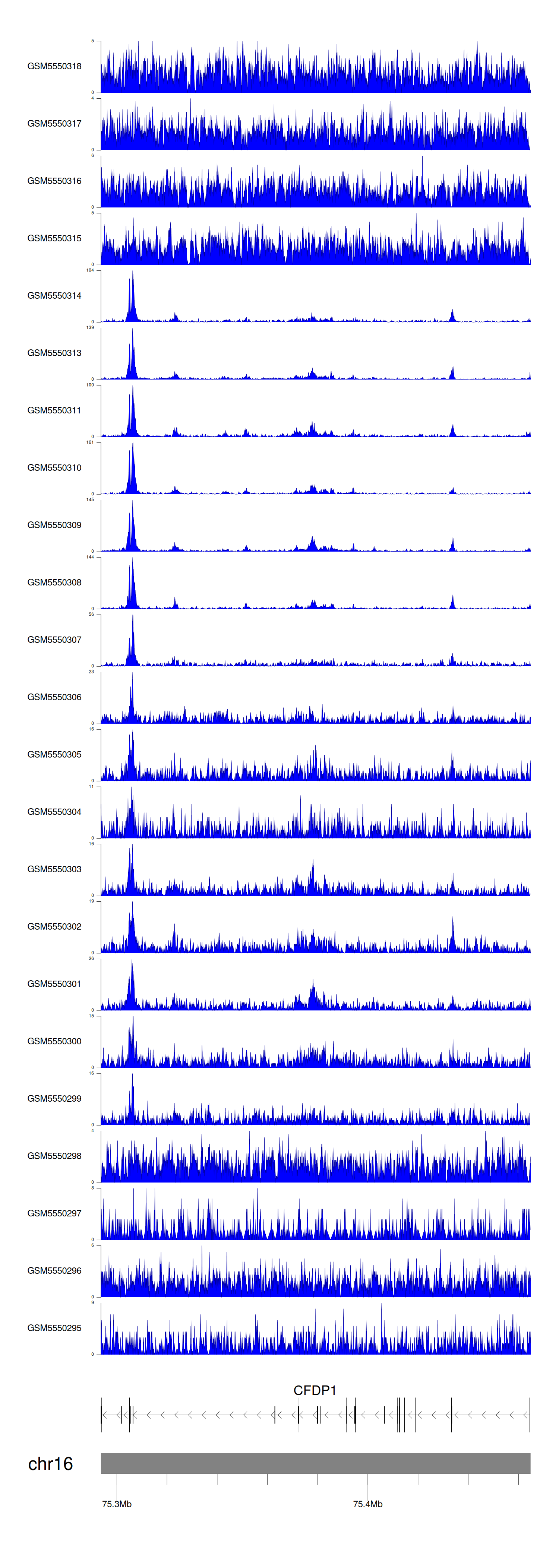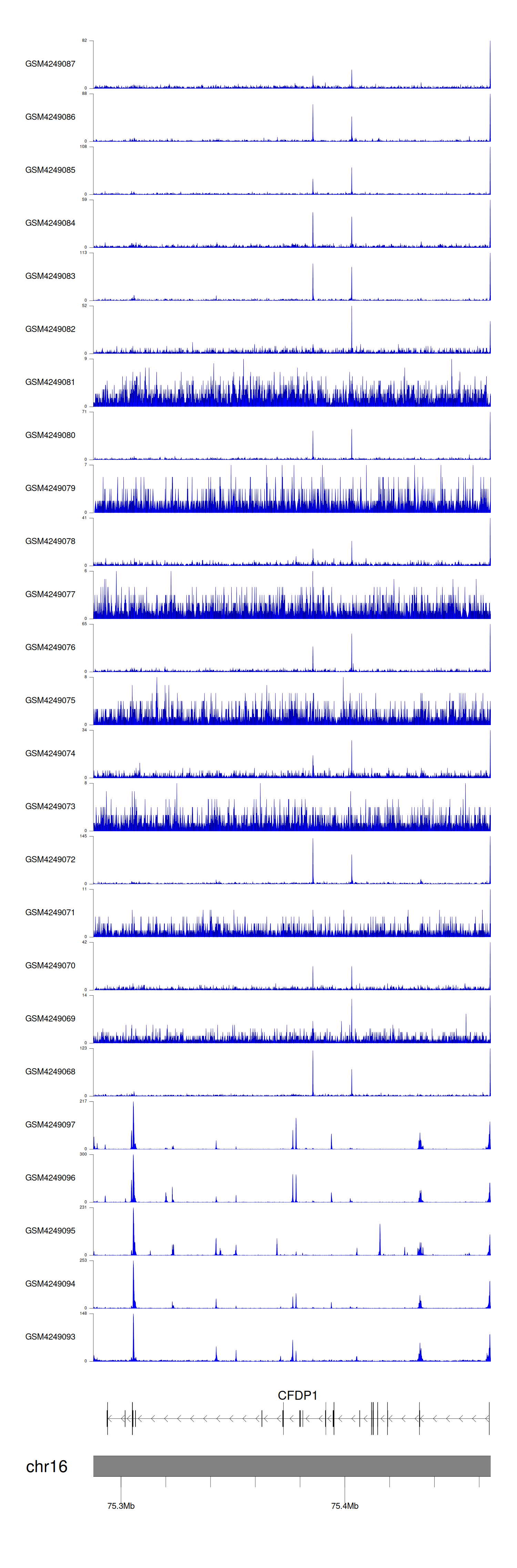 > Dataset: GSE143026 - CFDP1 peak across samples
