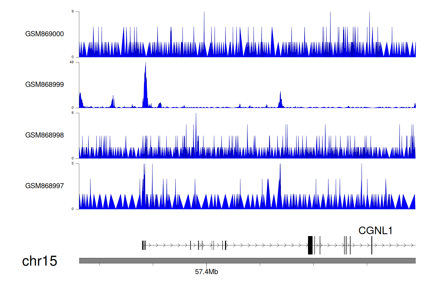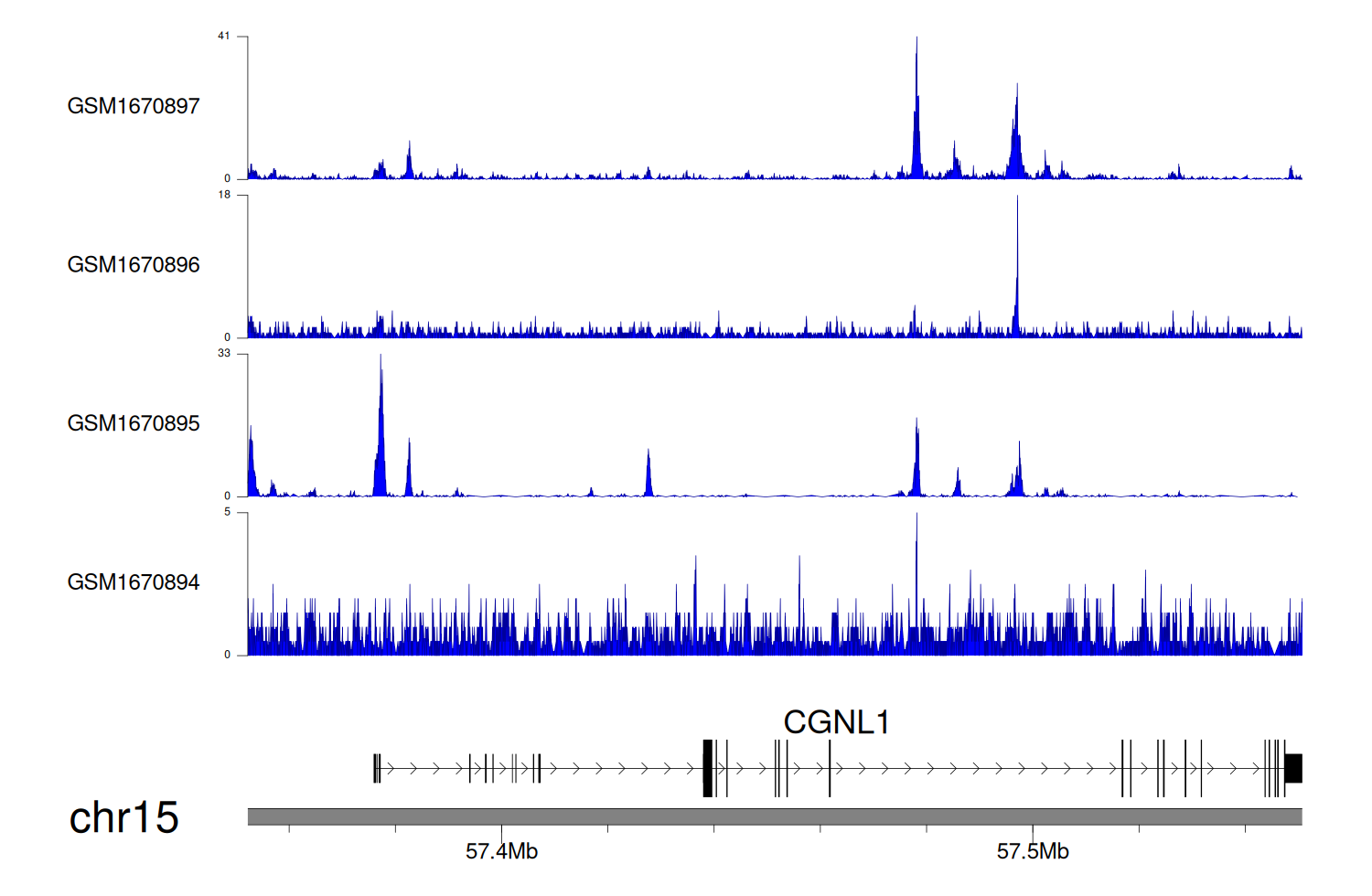 > Dataset: GSE68402 - CGNL1 peak across samples