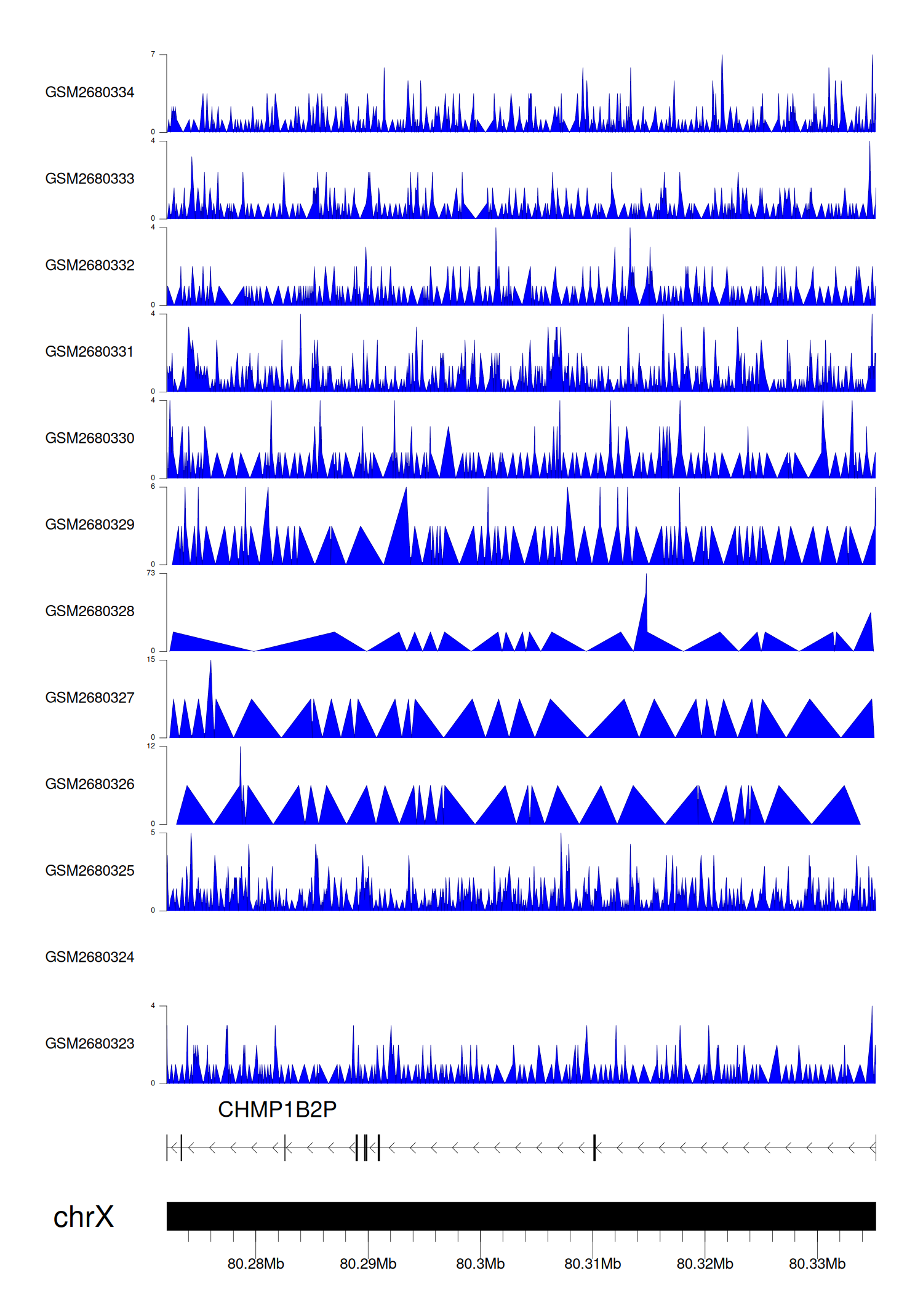 > Dataset: GSE68402 - CHMP1B2P peak across samples
