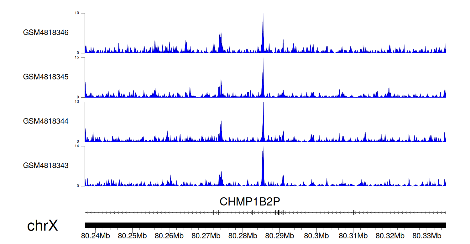 > Dataset: GSE131257 - CHMP1B2P peak across samples