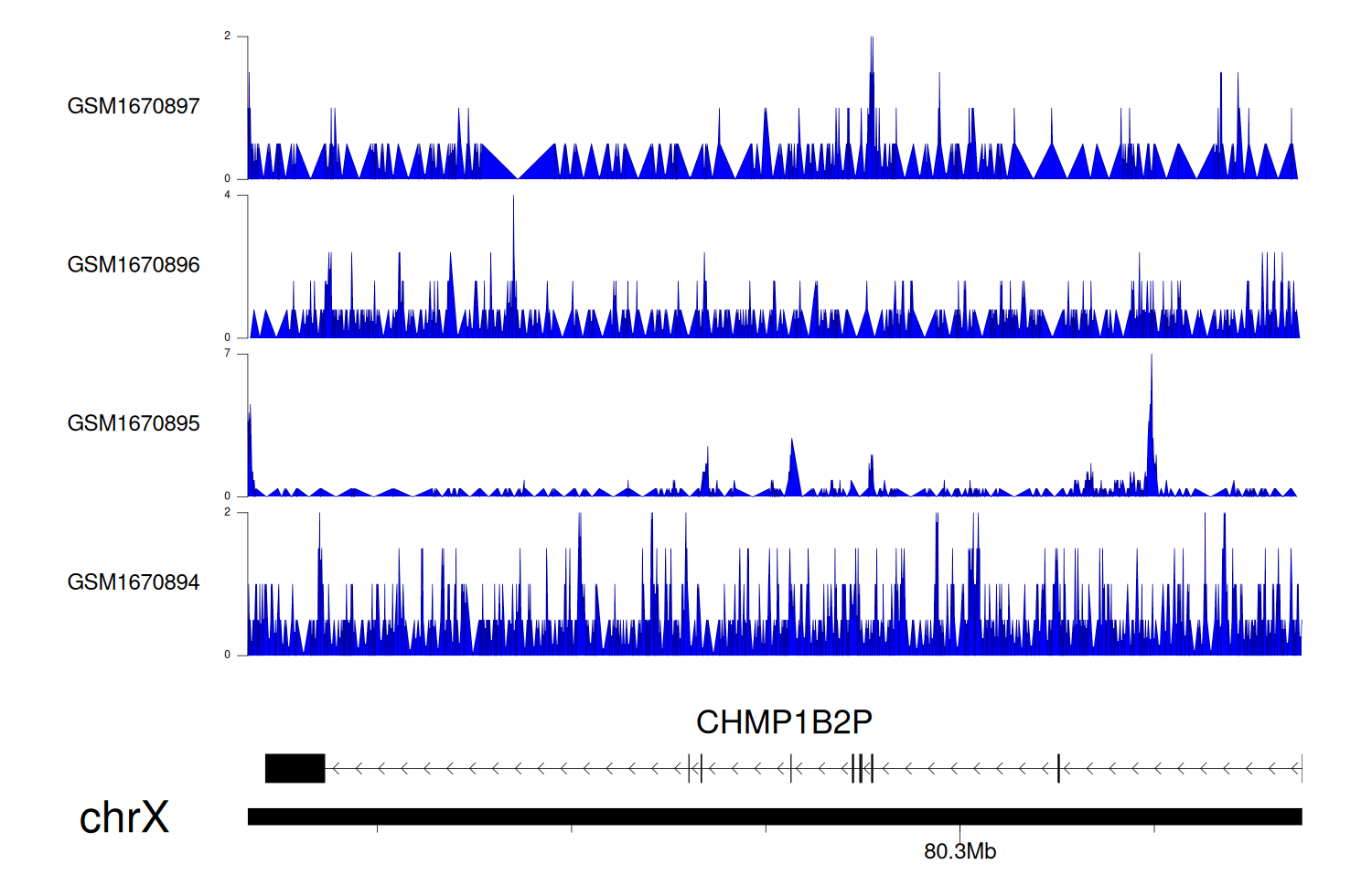 > Dataset: GSE100400 - CHMP1B2P peak across samples
