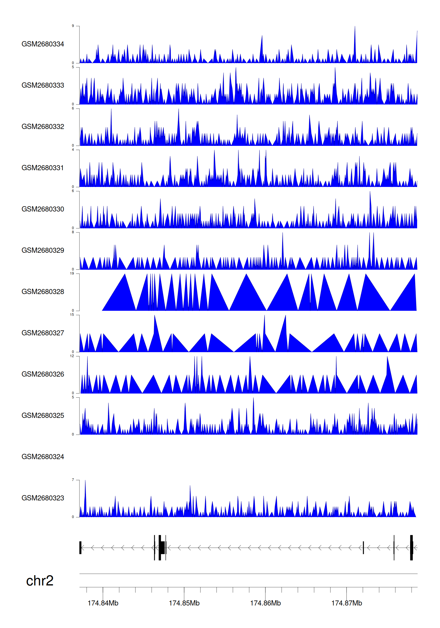 > Dataset: GSE68402 - CHN1 peak across samples