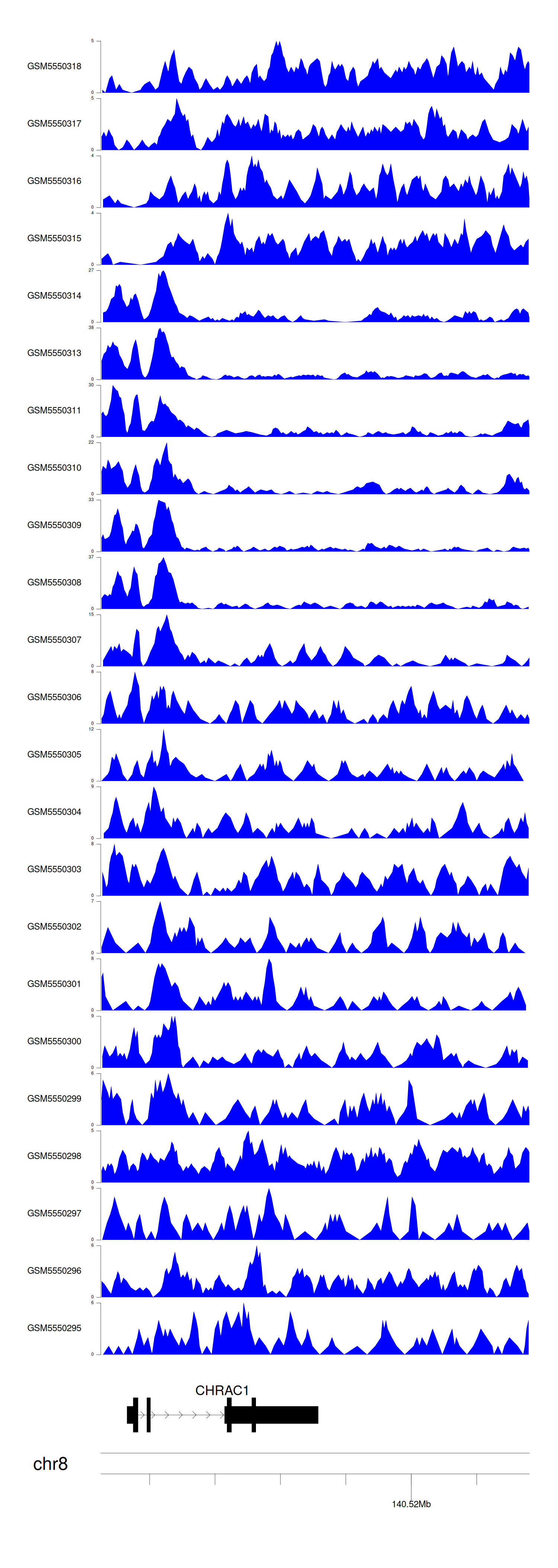 > Dataset: GSE143026 - CHRAC1 peak across samples