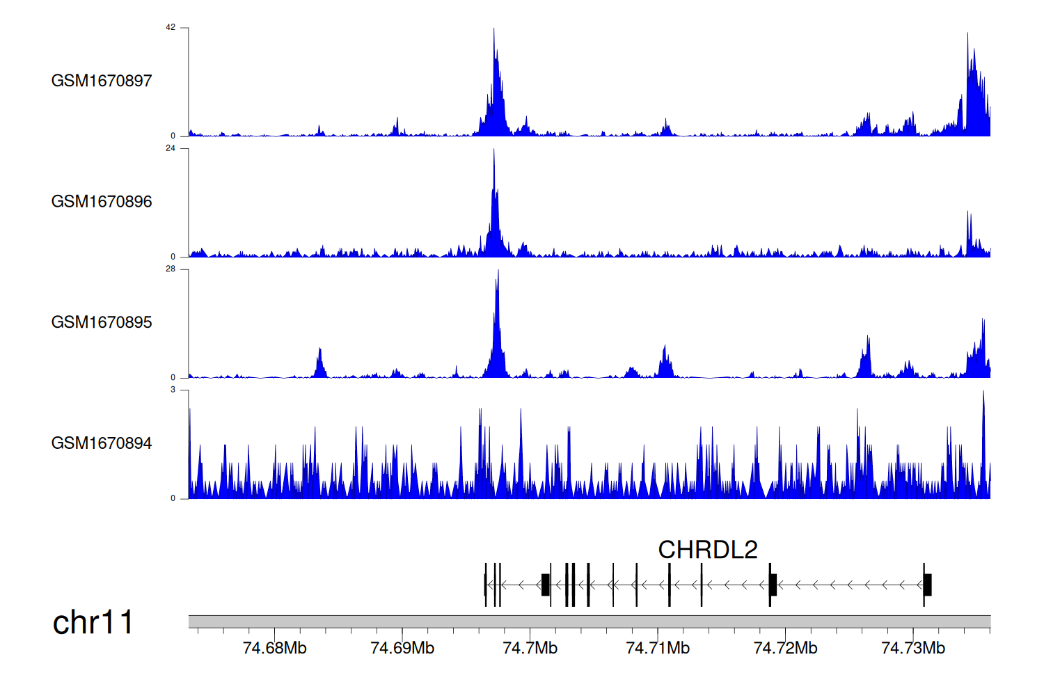 > Dataset: GSE68402 - CHRDL2 peak across samples