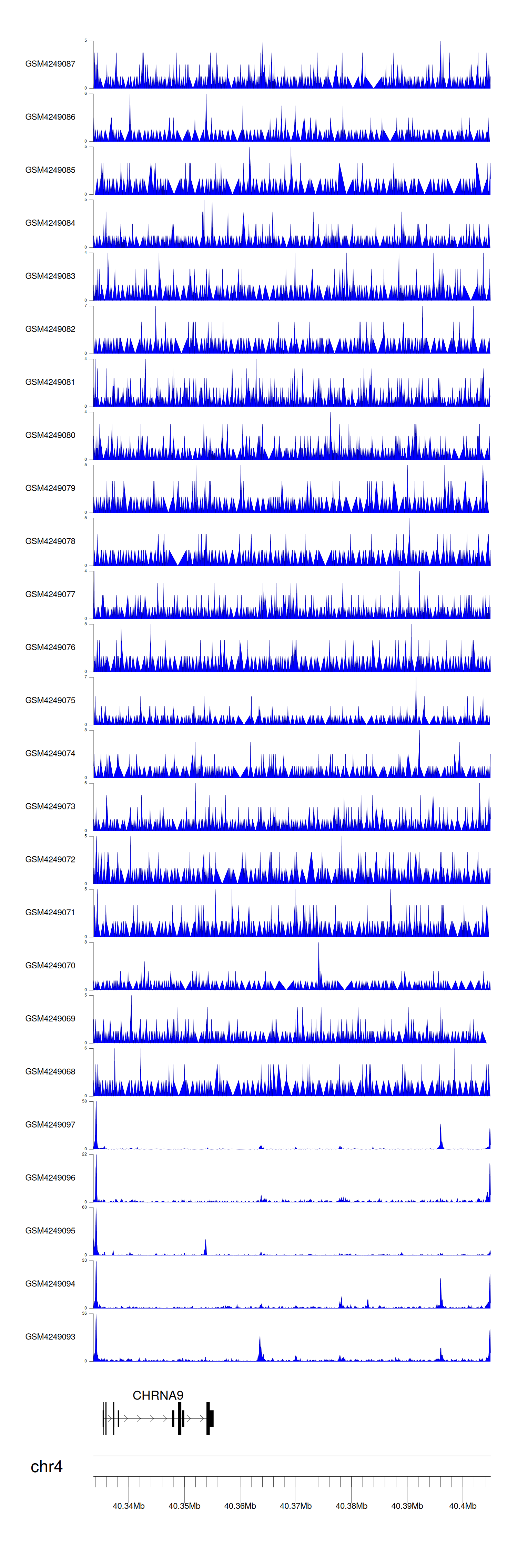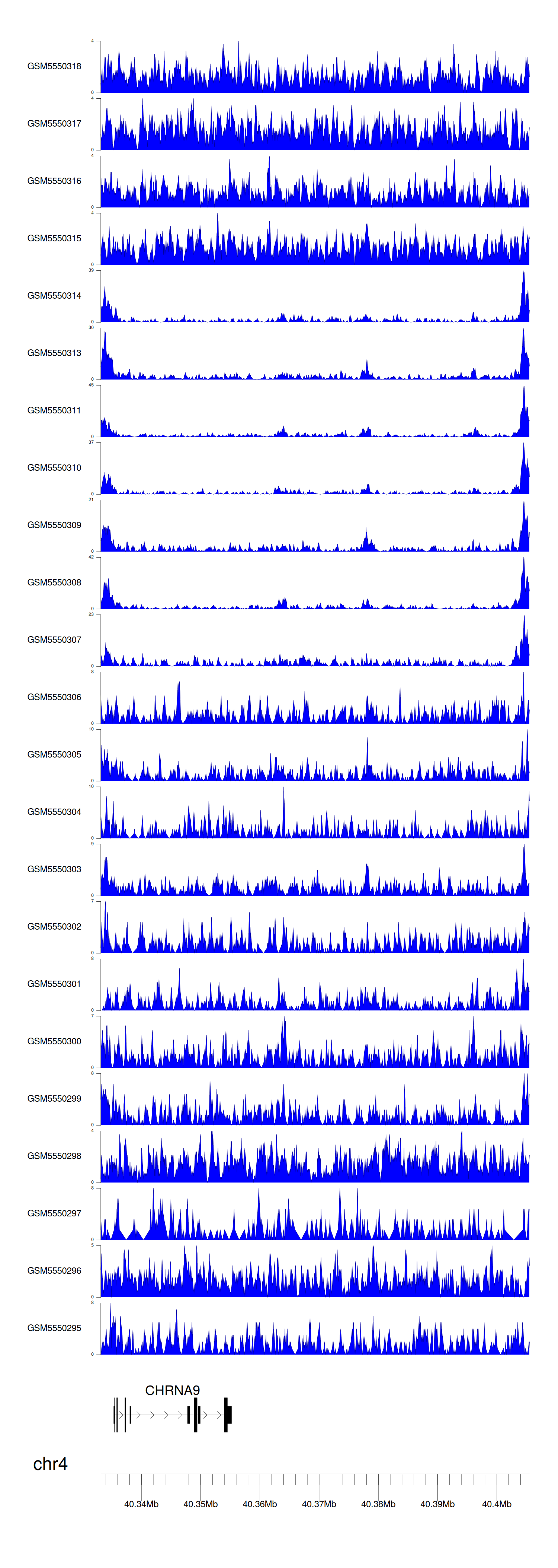 > Dataset: GSE143026 - CHRNA9 peak across samples