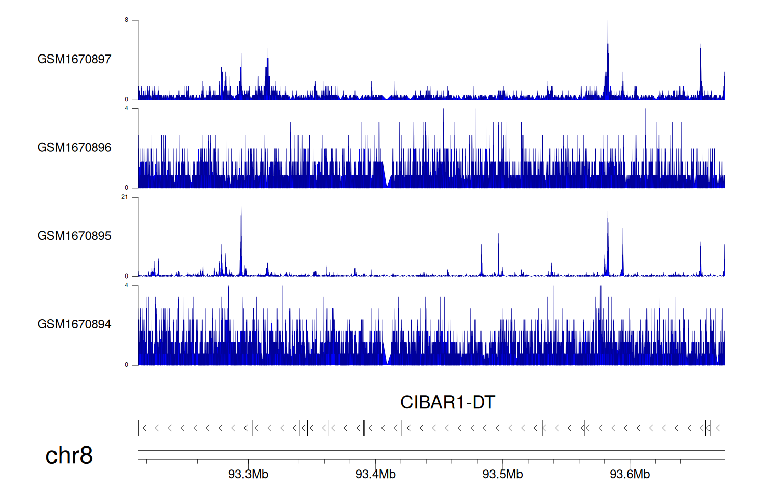 > Dataset: GSE68402 - CIBAR1-DT peak across samples