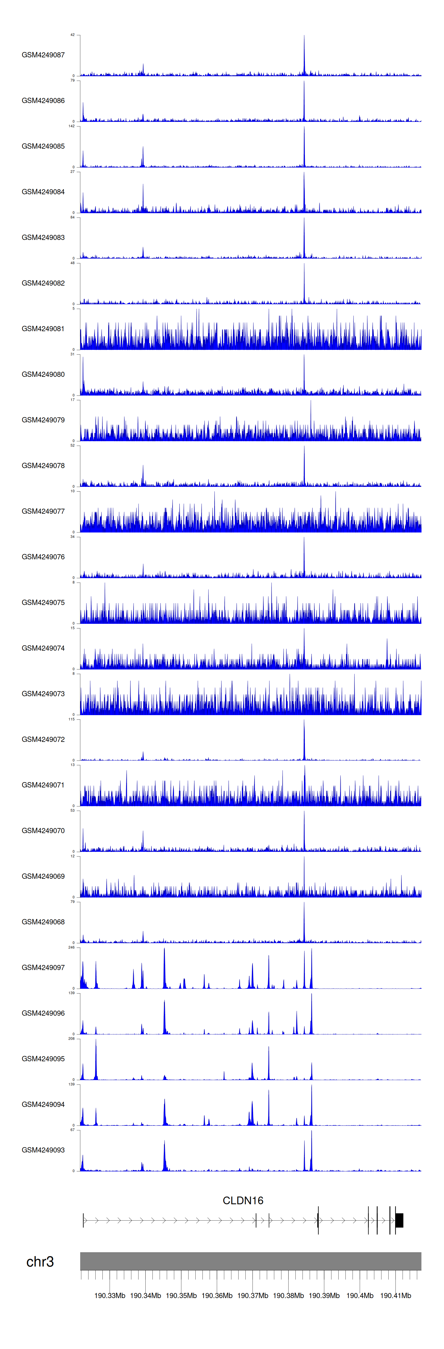 > Dataset: GSE143026 - CLDN16 peak across samples