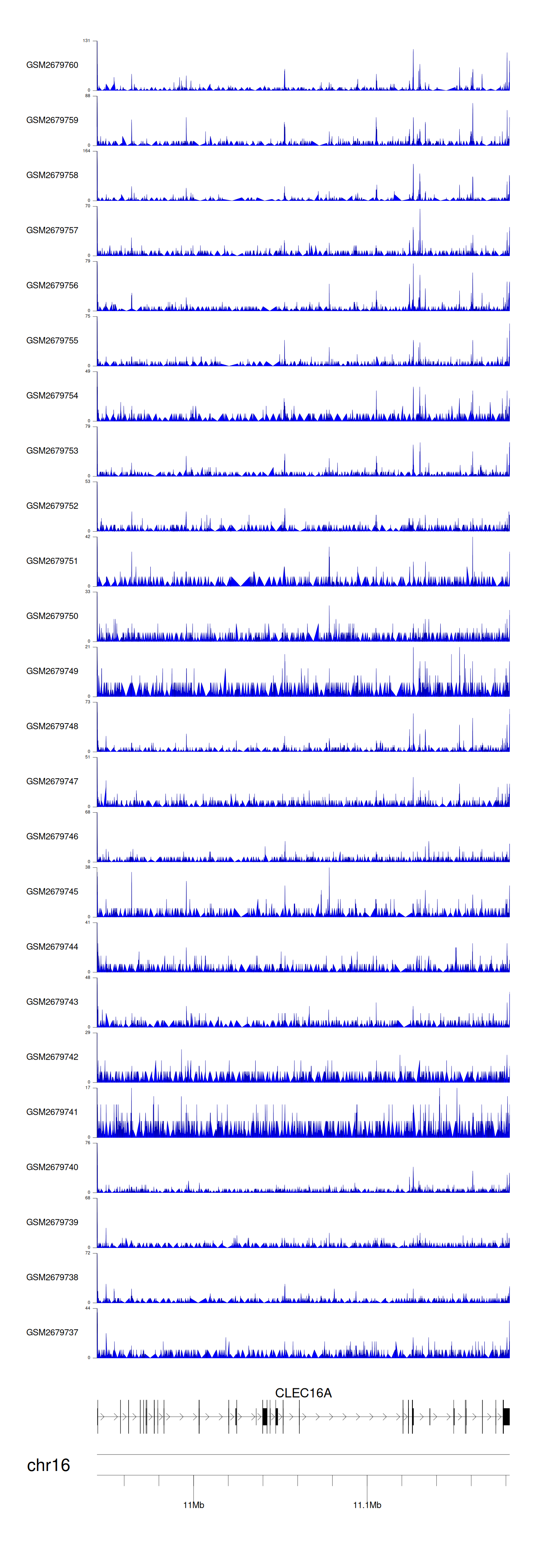 > Dataset: GSE100376 - CLEC16A peak across samples