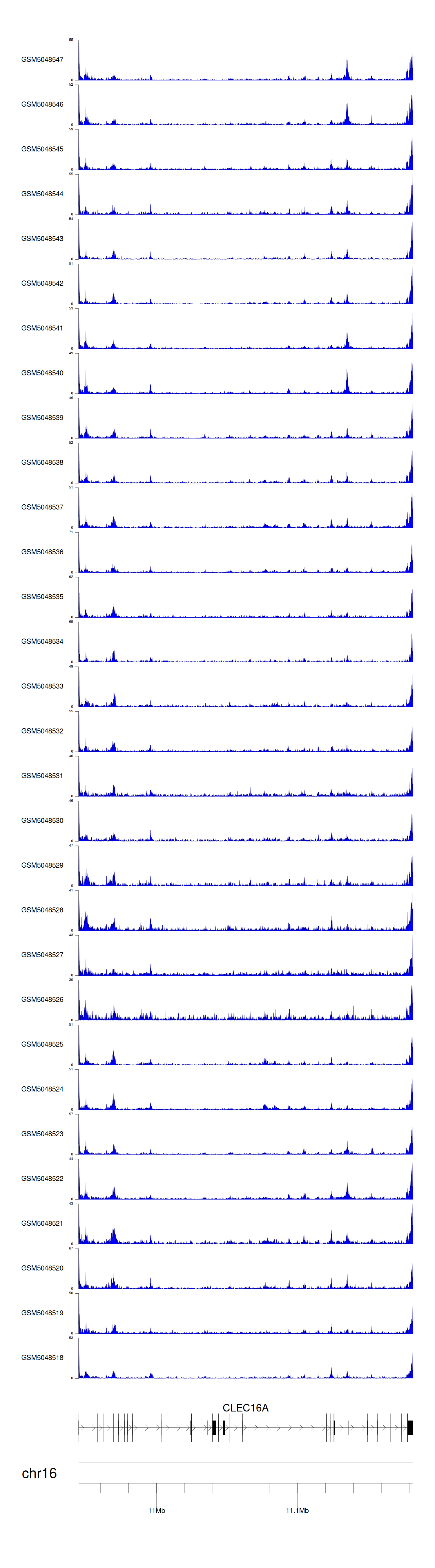 > Dataset: GSE30738 - CLEC16A peak across samples